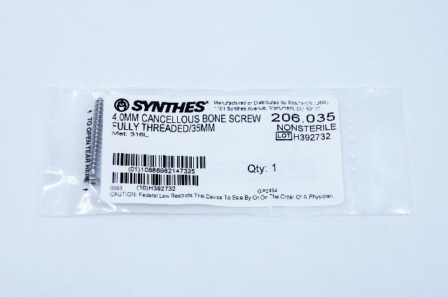 - Synthes 206.035 4.0mm Cancellous Bone Screw Fully Threaded 35mm