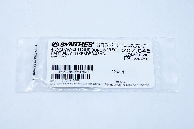 - Synthes 207.045 4.0mm Cancellous Bone Screw Partially Threaded 45mm