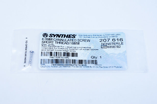 - Synthes 207.616 4.0mm Cannulated Screw Short Thread/16mm