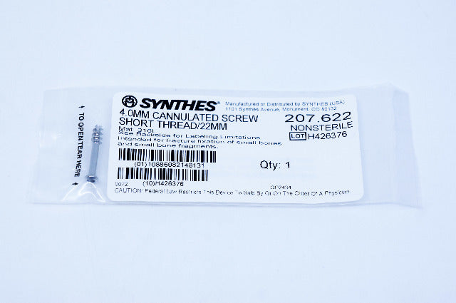 - Synthes 207.622 4.0mm Cannulated Screw Short Thread/22mm