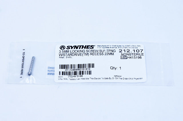 - Synthes 212.107 3.5mm Locking Screw Self-Tapping With Stardrive Recess 22mm