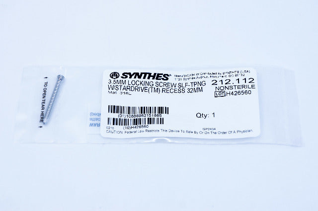 - Synthes 212.112 3.5mm Locking Screw Self-Tapping With Stardrive Recess 32mm