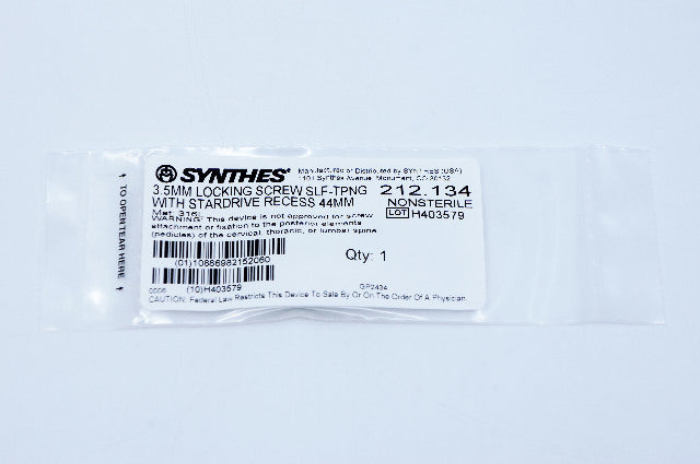 - Synthes 212.134 3.5mm Locking Screw Self-Tapping With Stardrive Recess 44mm