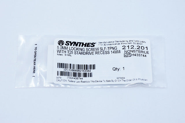 - Synthes 212.201 5.0mm Locking Screw Self-Tapping With T25 Stardrive Recess 14mm
