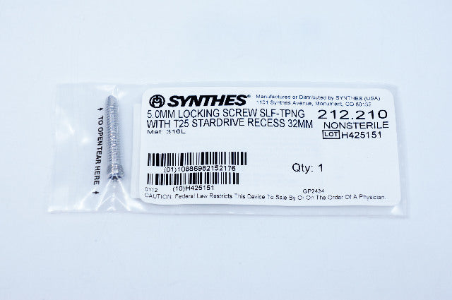 - Synthes 212.210 5.0mm Locking Screw Self-Tapping With T25 Stardrive Recess 32mm