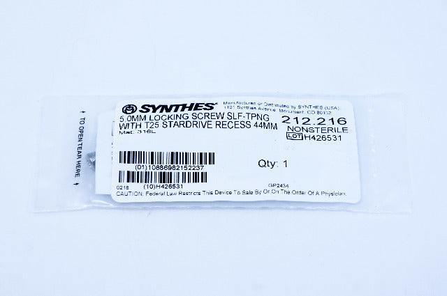 - Synthes 212.216 5.0mm Locking Screw Self-Tapping With T25 Stardrive Recess 44mm