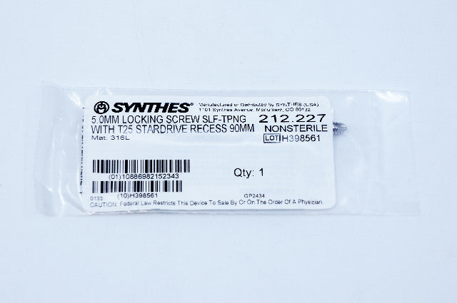 - Synthes 212.227 5.0mm Locking Screw Self-Tapping With T25 Stardrive Recess 90mm