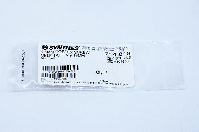 - Synthes 214.818 4.5mm Cortex Screw Self-Tapping 18mm