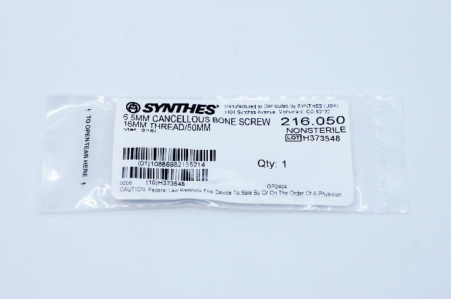 - Synthes 216.050 6.5mm Cancellous Bone Screw 16mm Thread/50mm