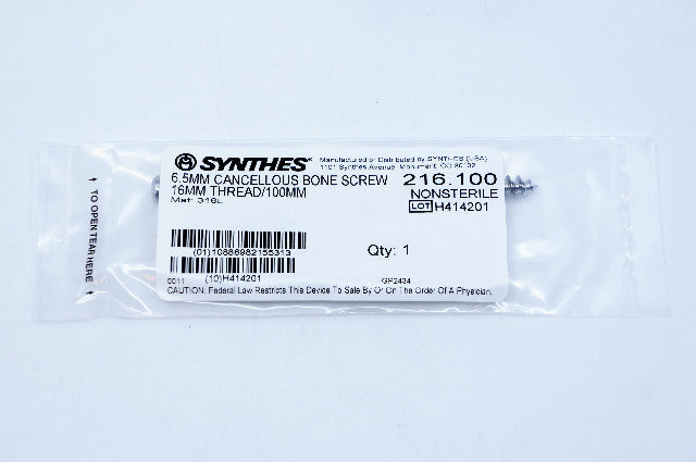 - Synthes 216.100 6.5mm Cancellous Bone Screw 16mm Thread/100mm