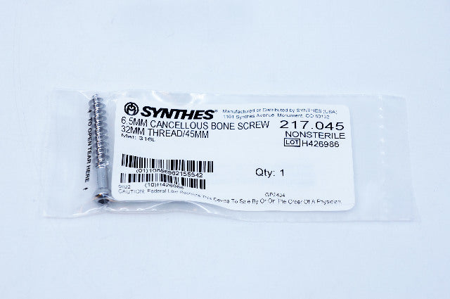 - Synthes 217.045 6.5mm Cancellous Bone Screw 32mm Thread/45mm