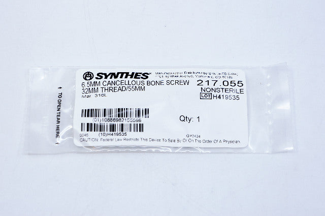 - Synthes 217.055 6.5mm Cancellous Bone Screw 32mm Thread/55mm