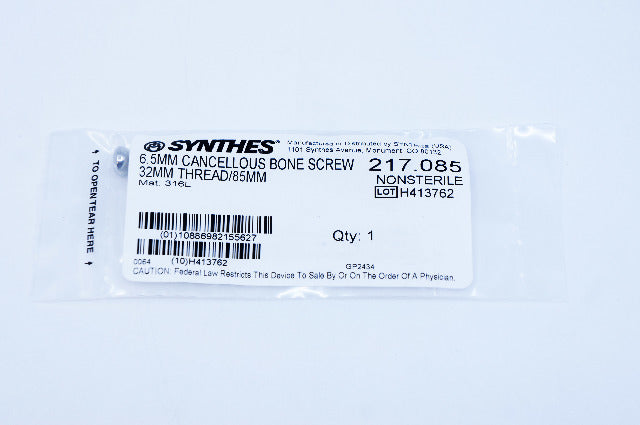 - Synthes 217.085 6.5mm Cancellous Bone Screw 32mm Thread/85mm