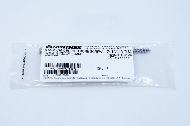 - Synthes 217.110 6.5mm Cancellous Bone Screw 32mm Thread/110mm