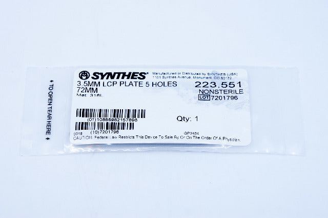- Synthes 223.551 3.5MM LCP Plate - 5 Holes / 72MM