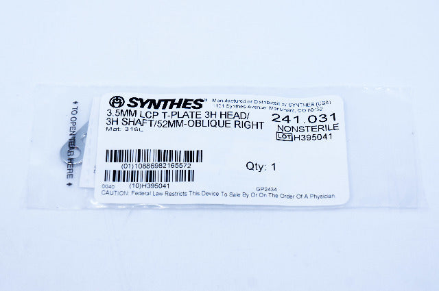 - Synthes 241.031 3.5mm LCP T-Plate 3H Head/3H Shaft/52mm-Oblique Right