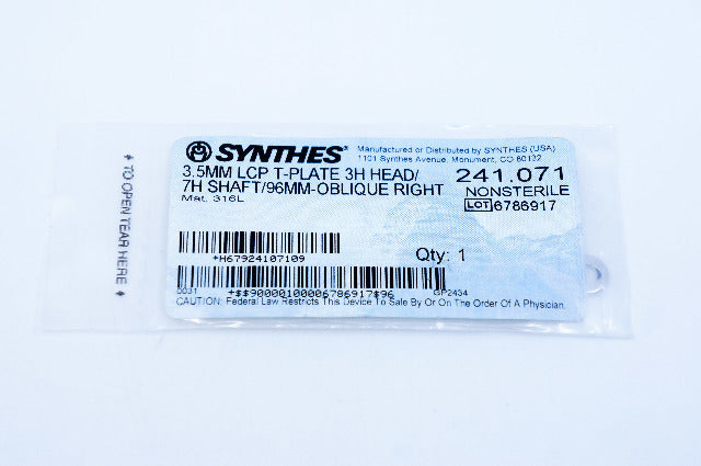 - Synthes 241.071 3.5mm LCP T-Plate 3H Head / 7H Shaft / 96mm - Oblique Right