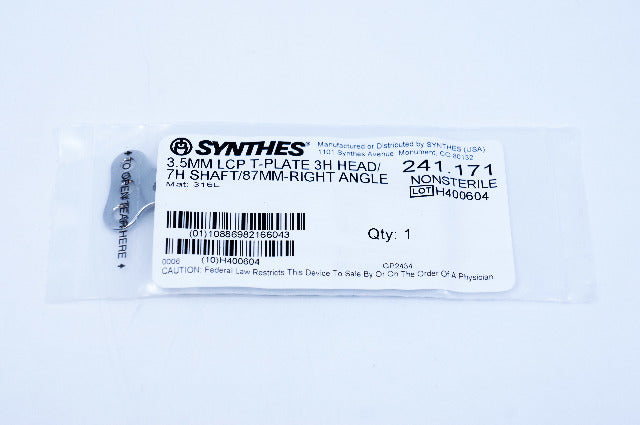 - Synthes 241.171 3.5mm LCP T-Plate: 3H Head / 7H Shaft / 87mm