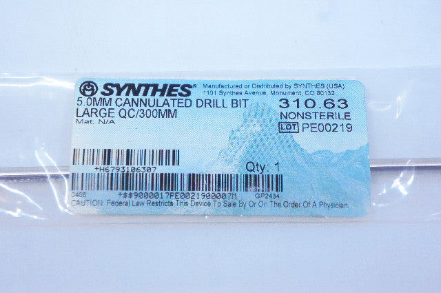 - Synthes 310.63 5.0mm Cannulated Drill Bit Large QC/300mm