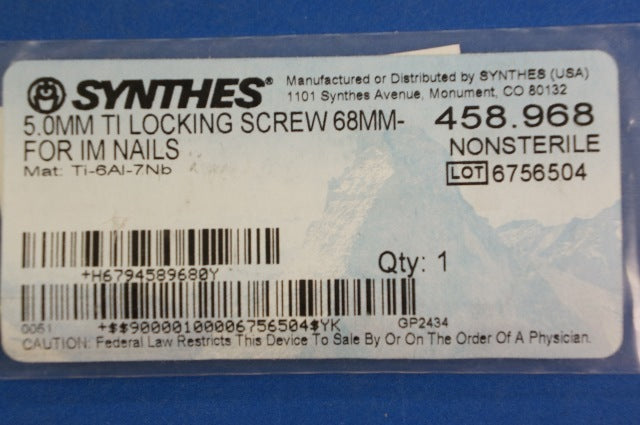 - Synthes 458.968 5.0mm Ti Locking Screw 68mm-For Im Nails