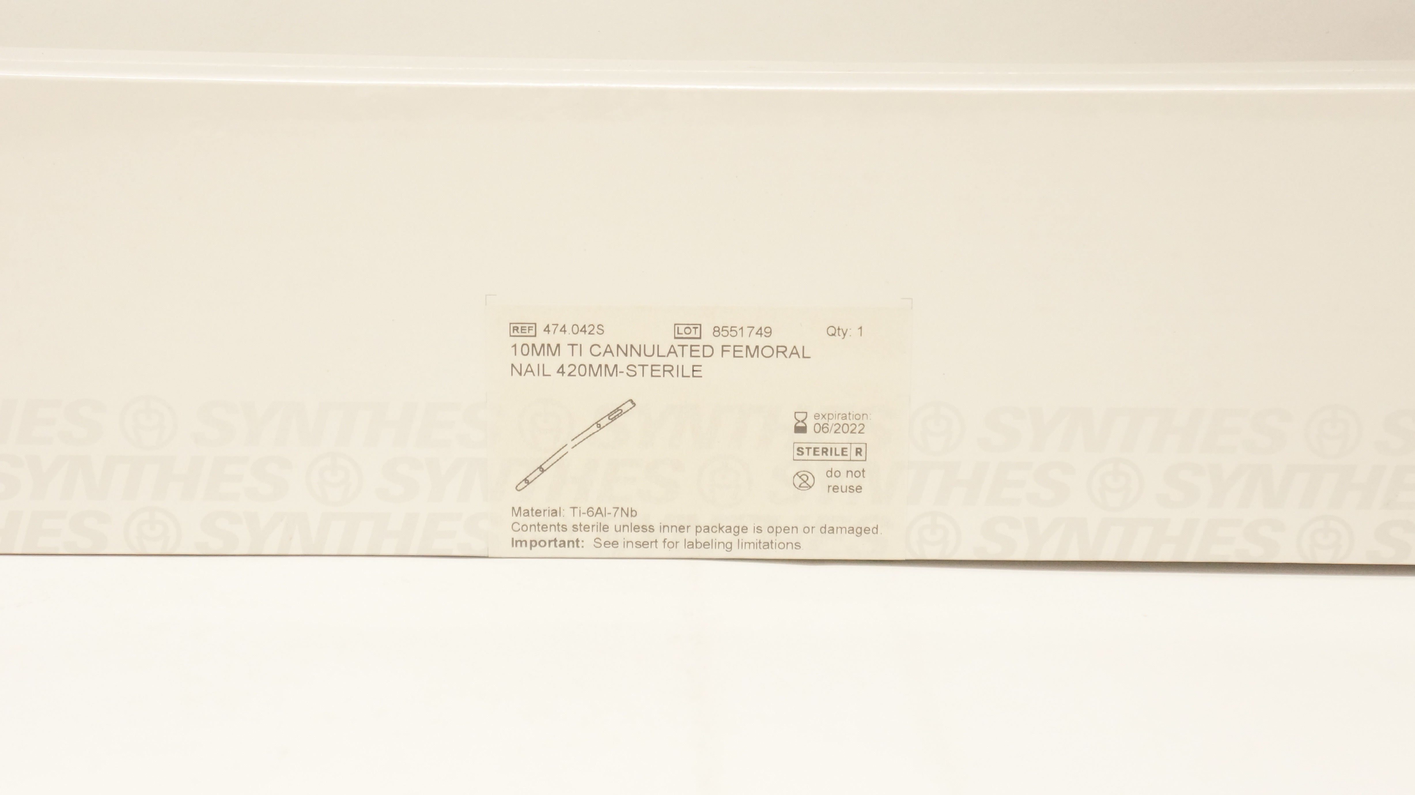 - Synthes 474.042S 10mm Ti Cannulated Femoral Nail 420mm