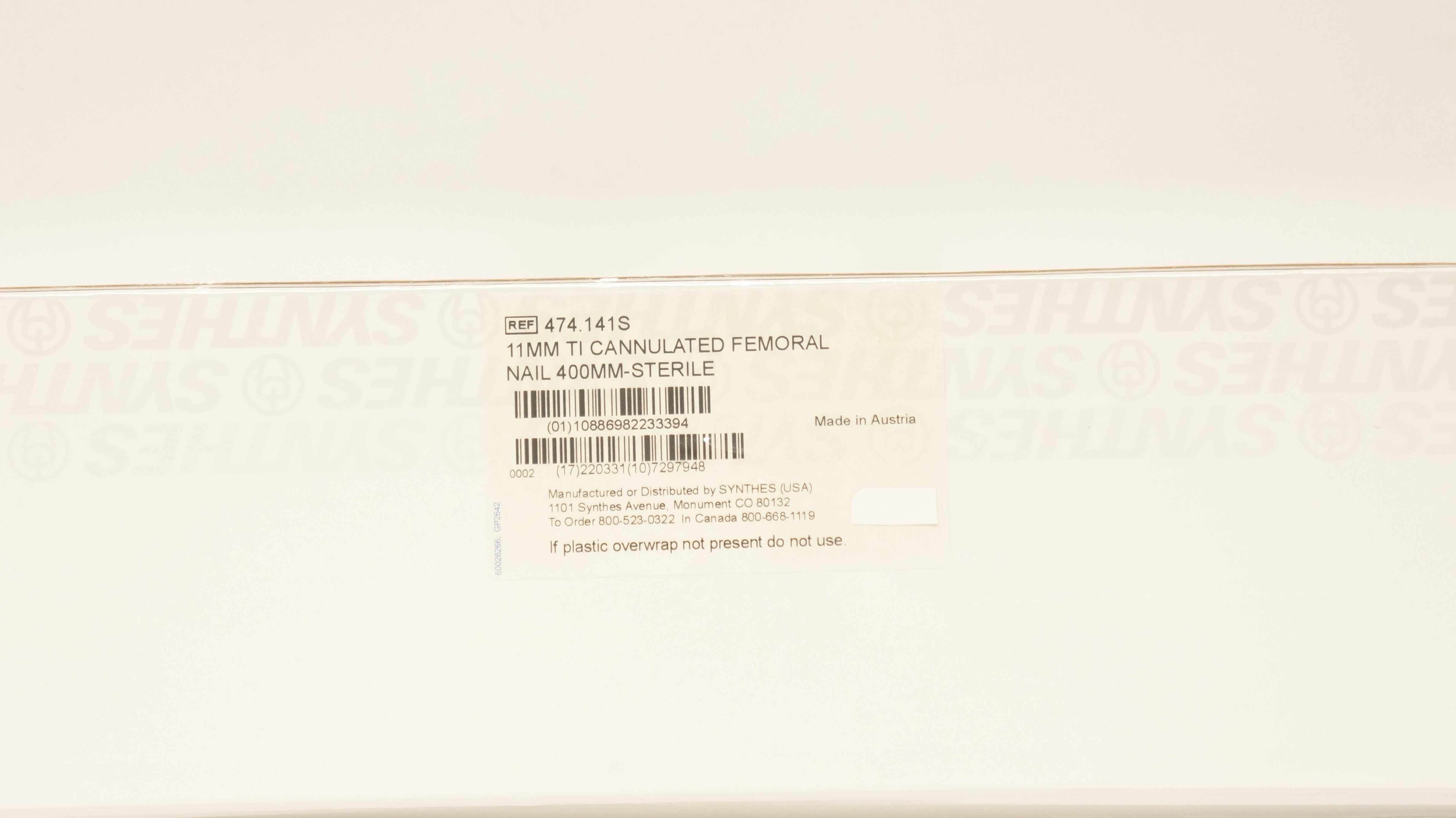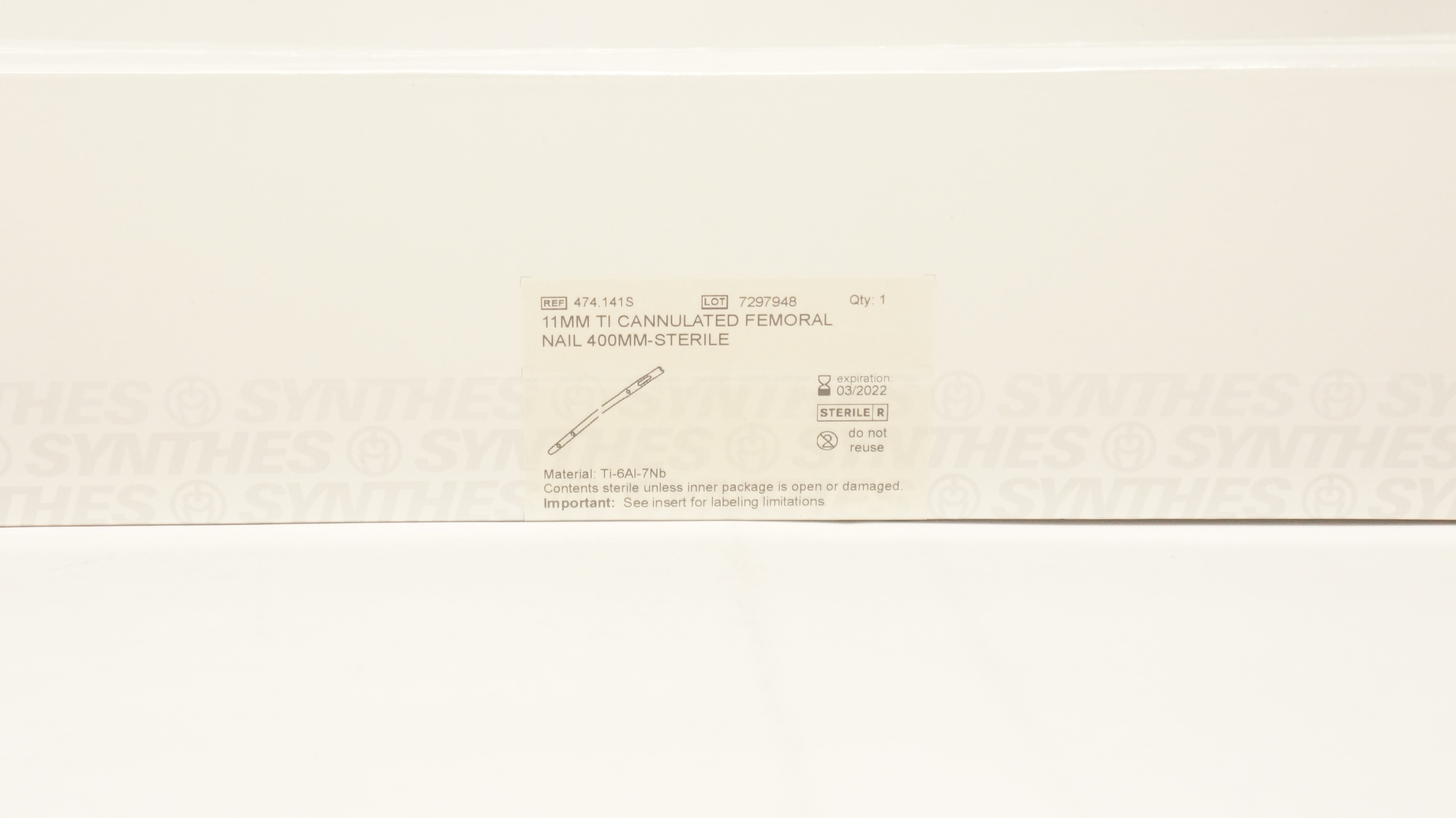 Synthes 474.141S 11mm Ti Cannulated Femoral Nail 400mm
