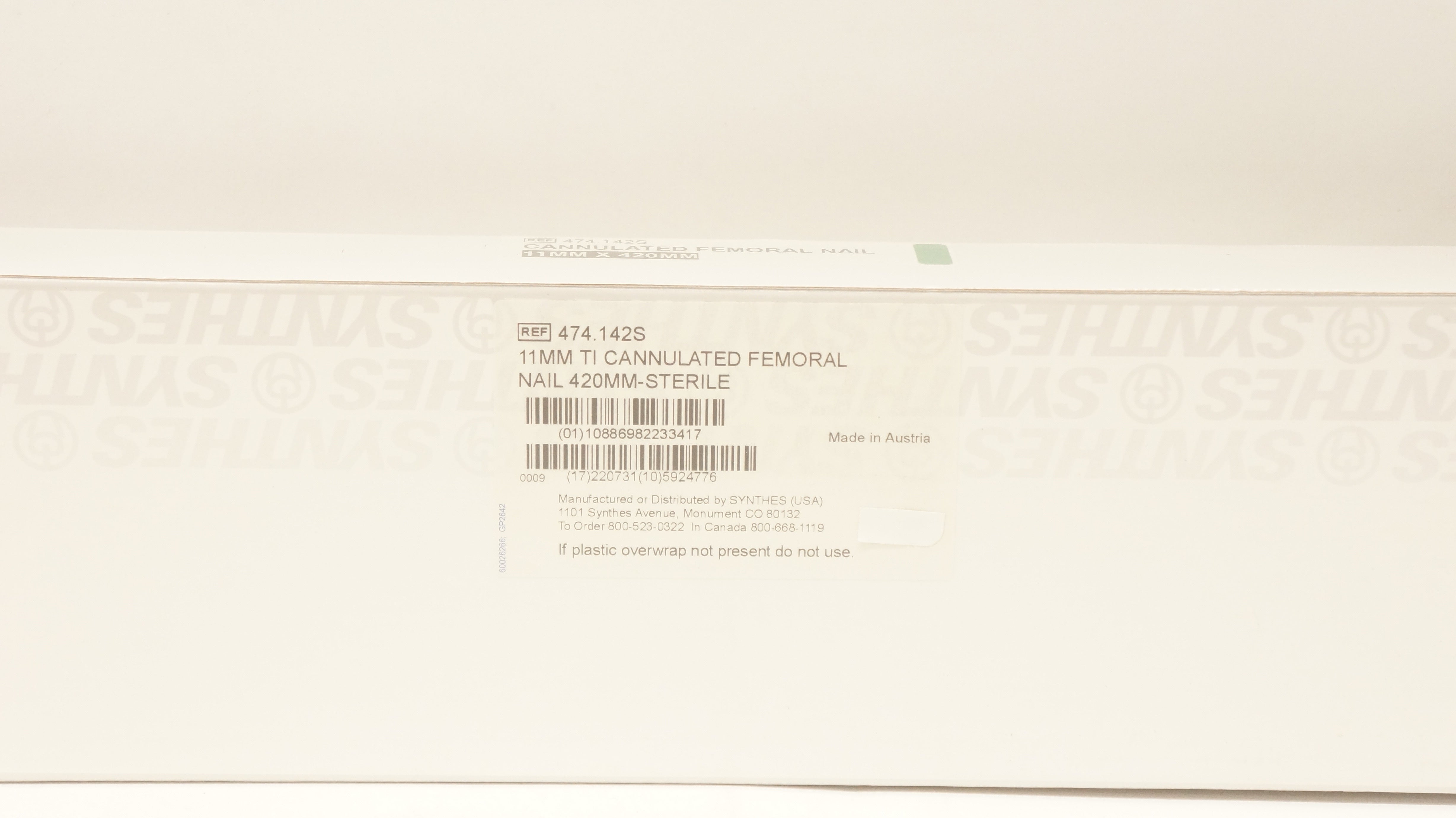 - Synthes 474.142S 11mm Ti Cannulated Femoral Nail 420mm
