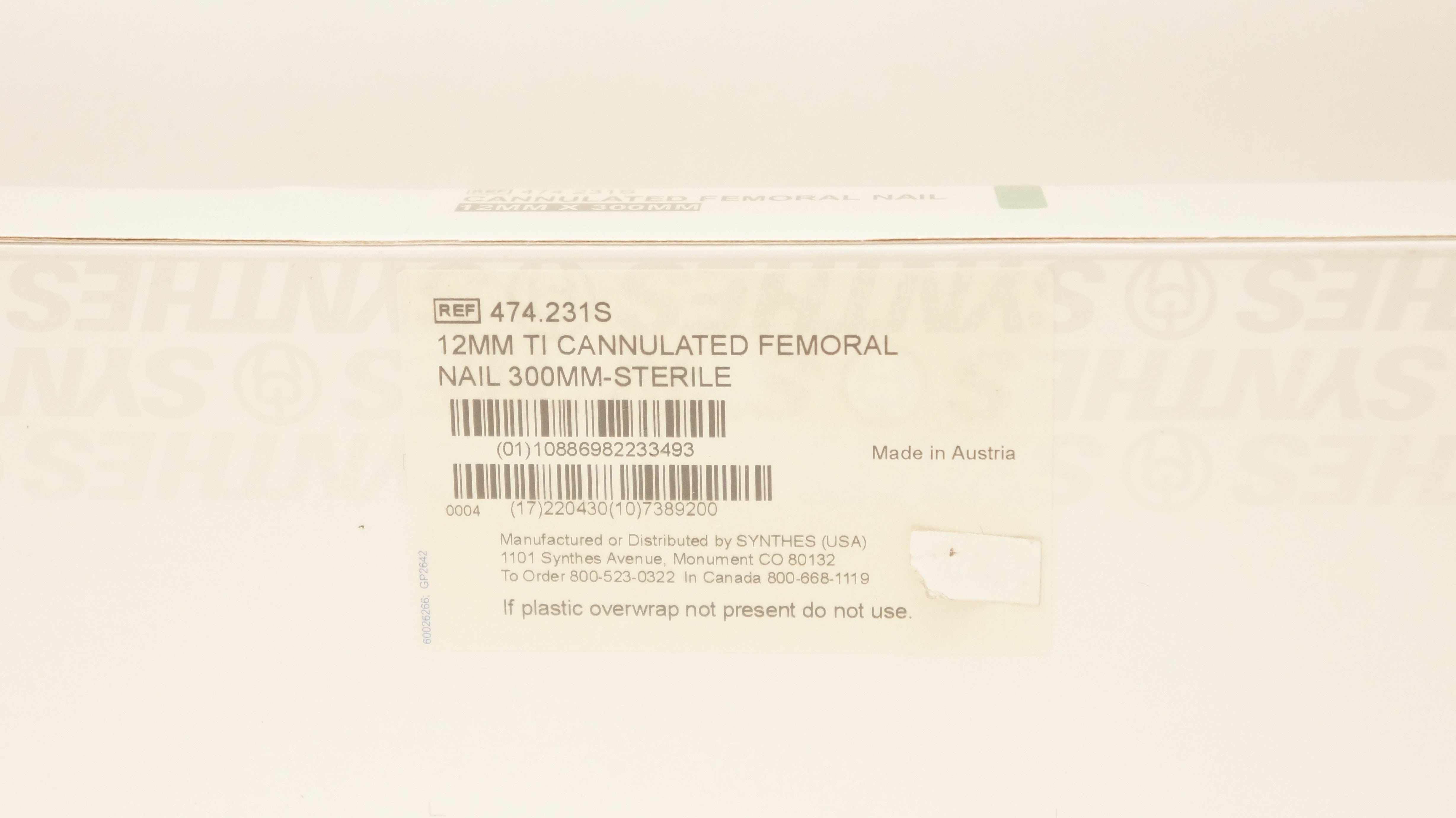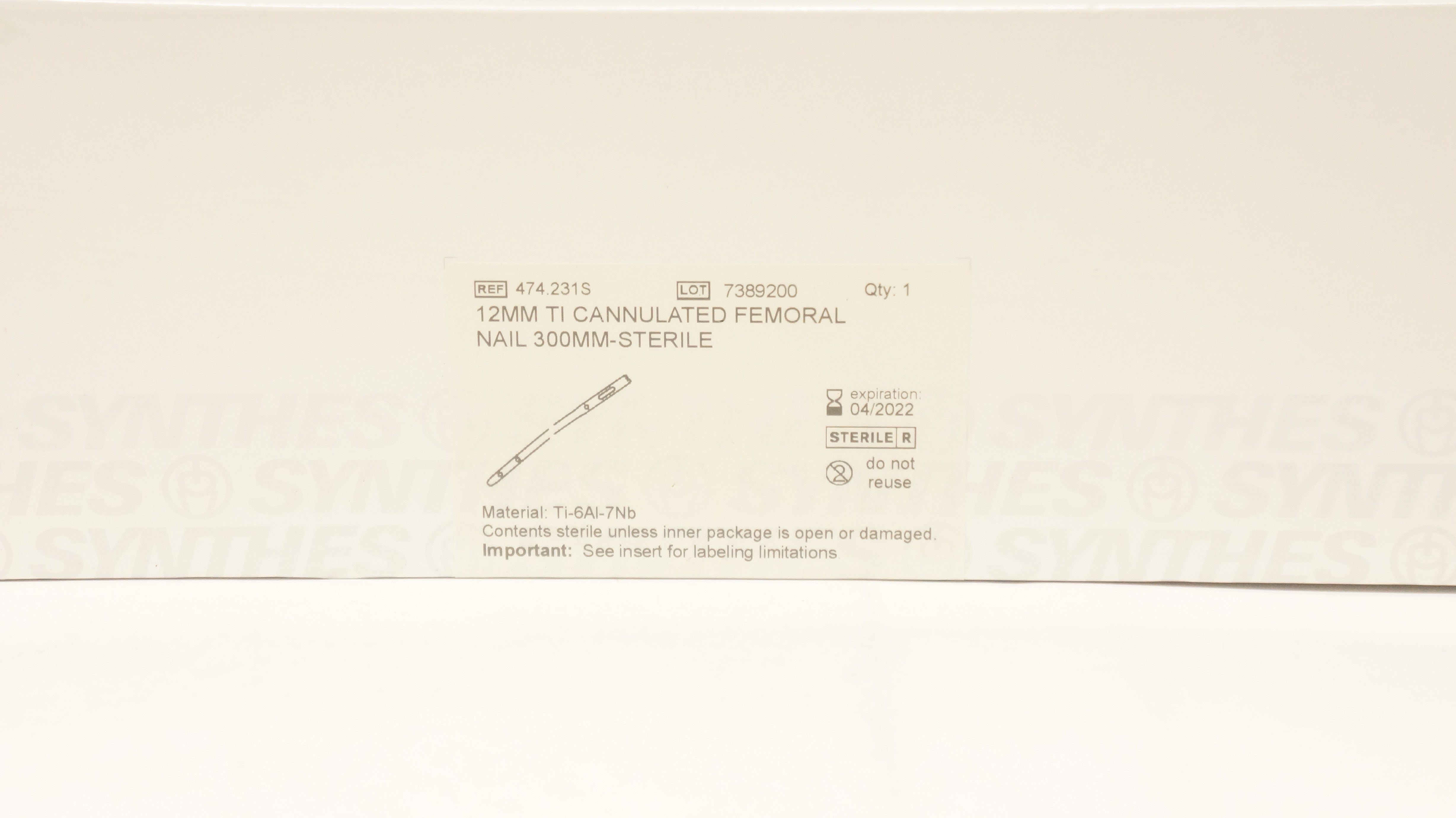 Synthes 474.231S 12mm Ti Cannulated Femoral Nail 300mm