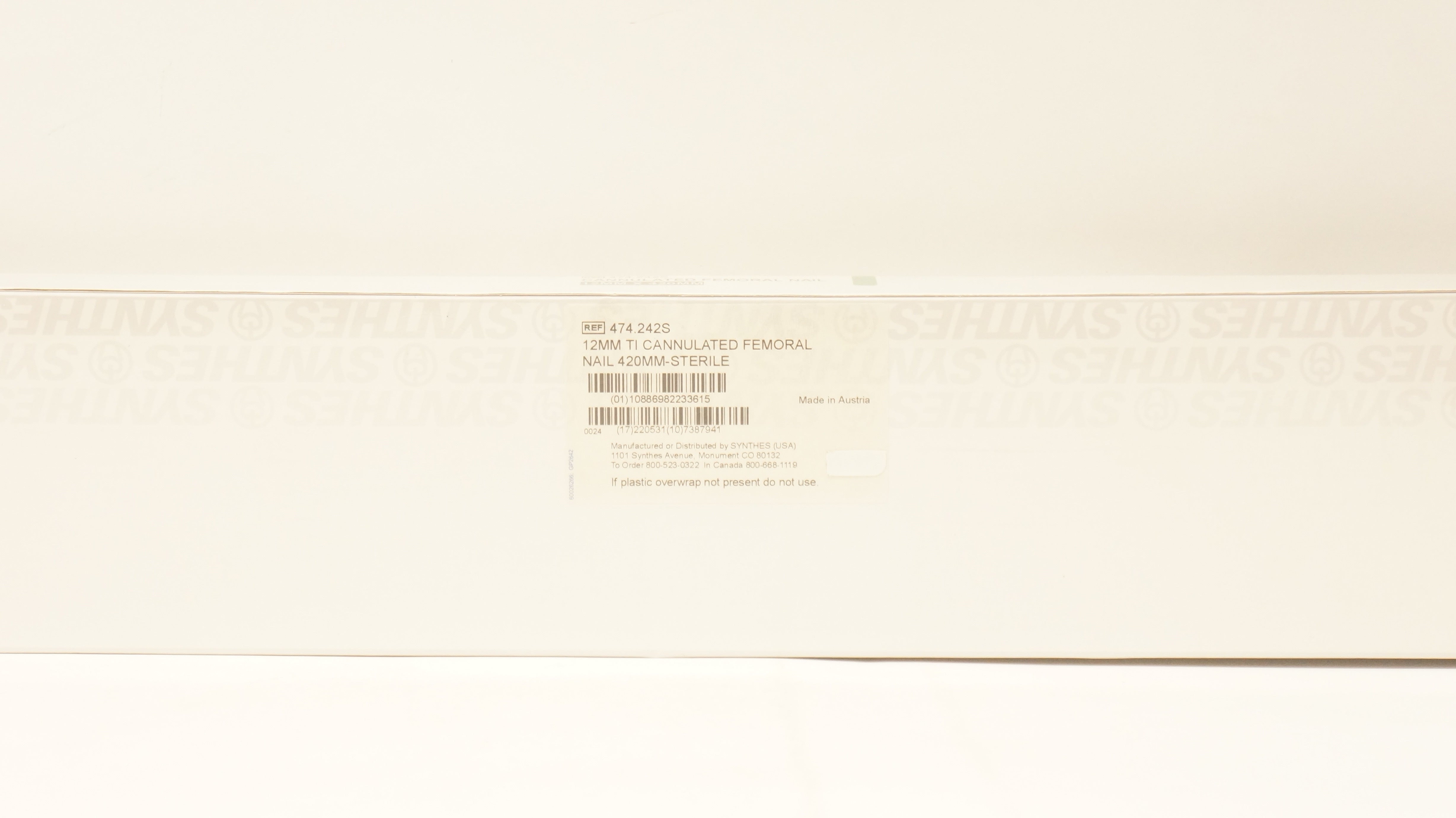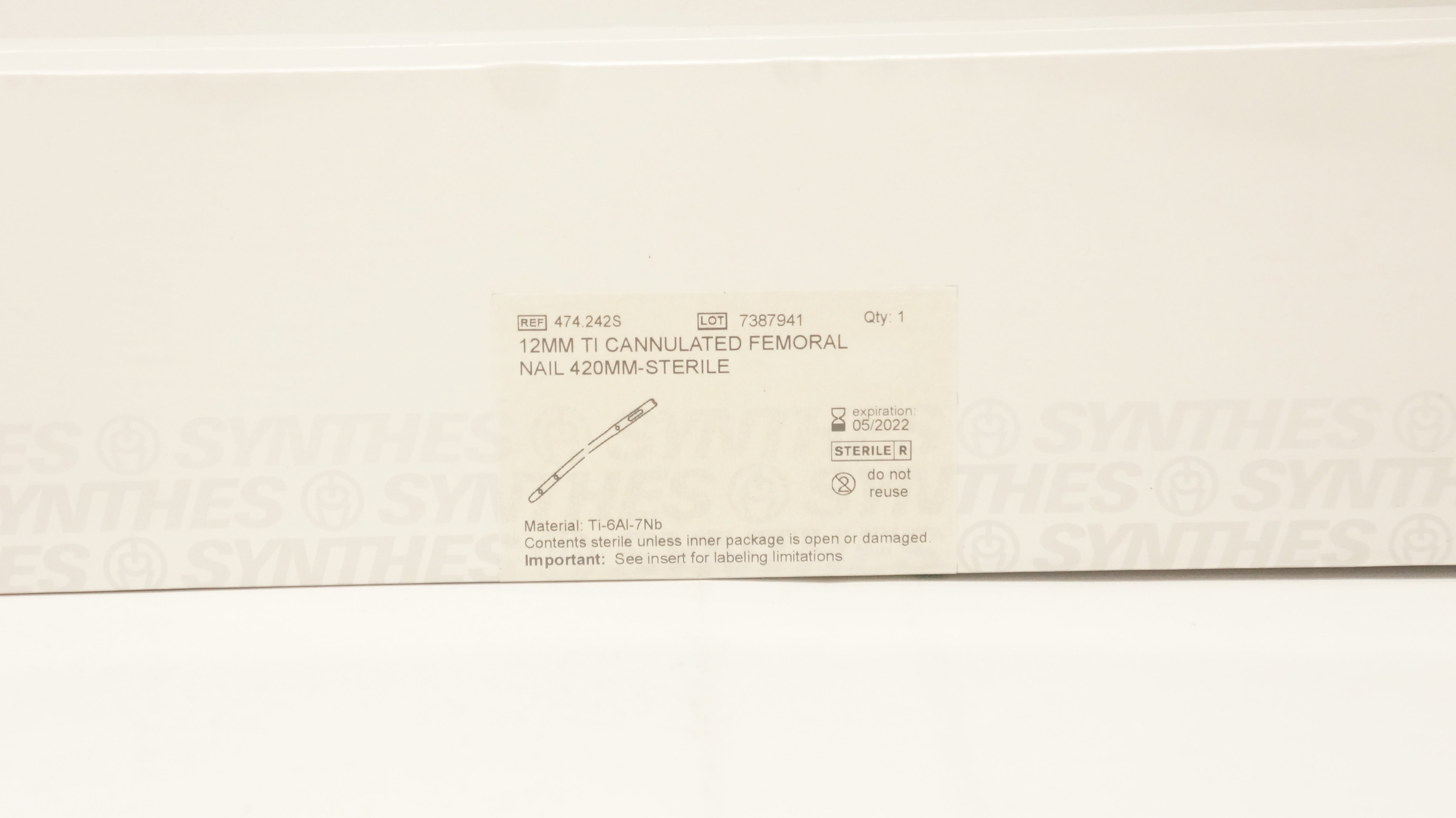 - Synthes 474.242S 12mm Ti Cannulated Femoral Nail 420mm