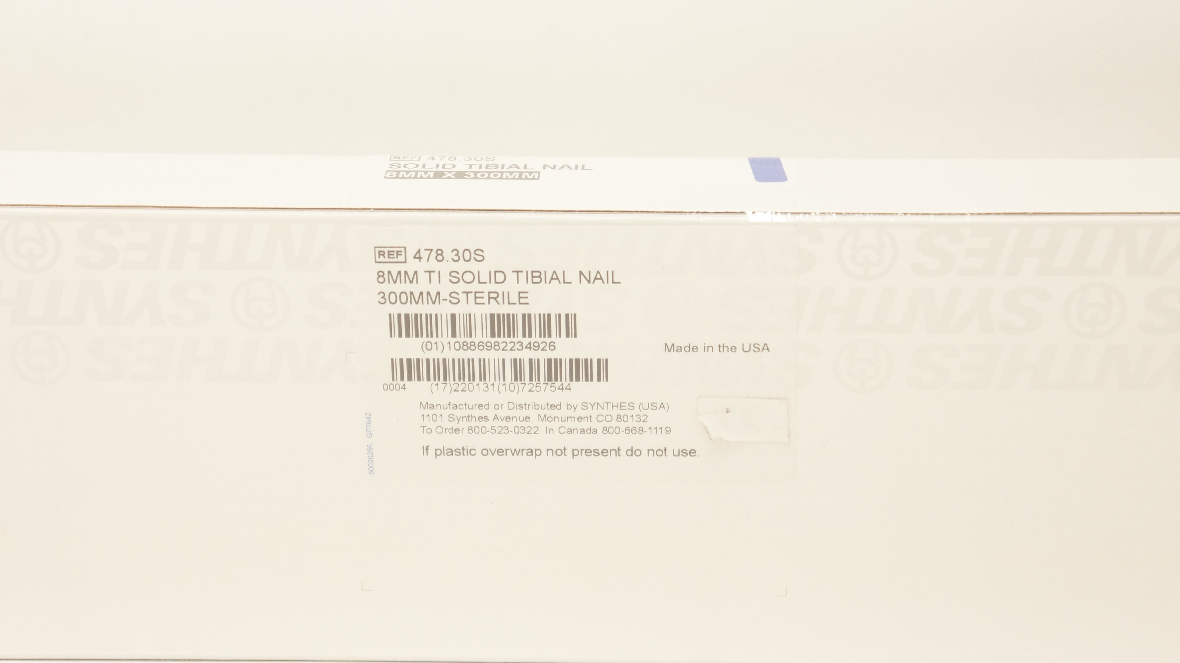 Synthes 478.30S 8mm Ti Solid Tibial Nail 300mm