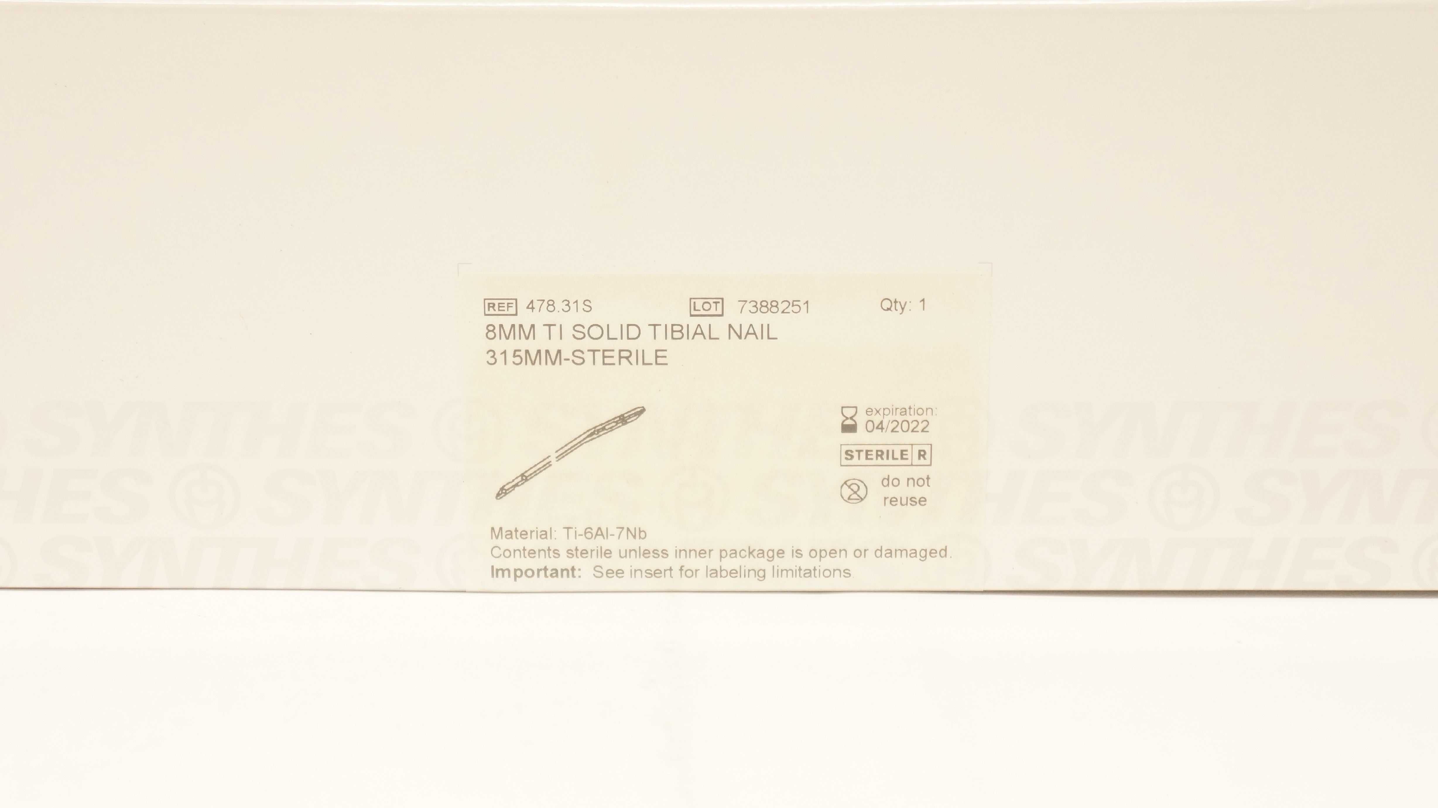 Synthes 478.31S 8mm Ti Solid Tibial Nail 315mm