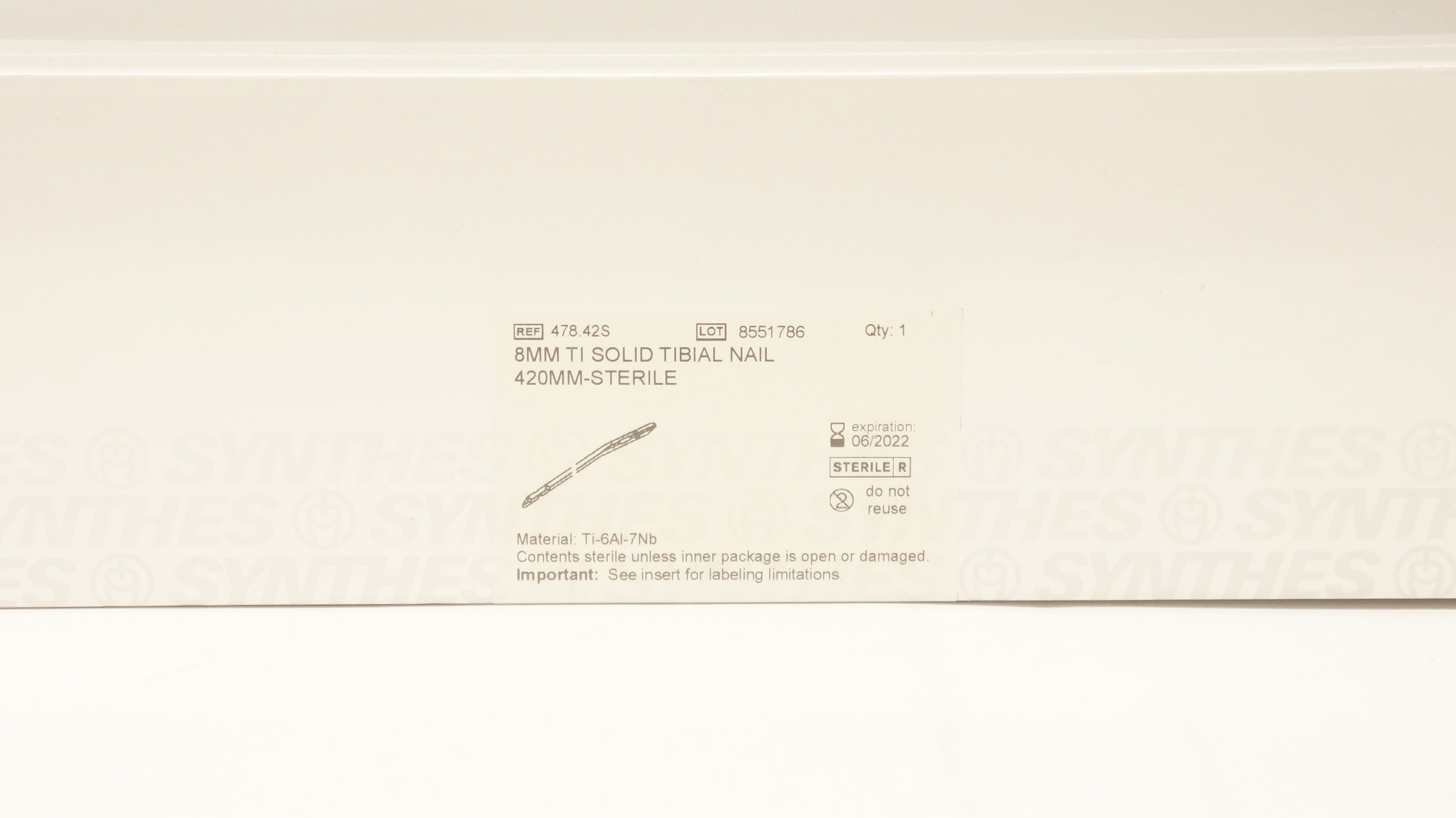- Synthes 478.42S 8mm Ti Solid Tibial Nail 420mm