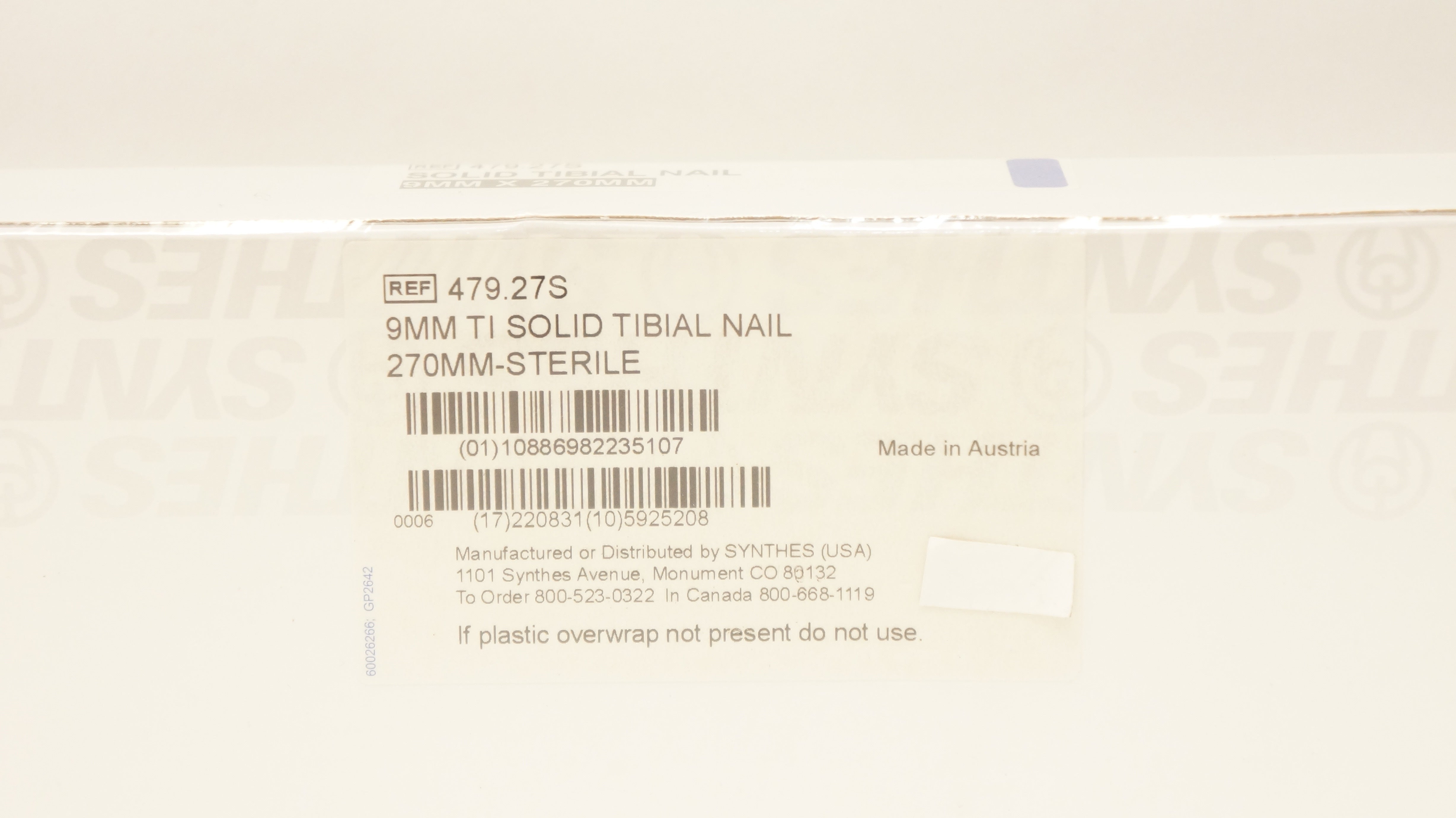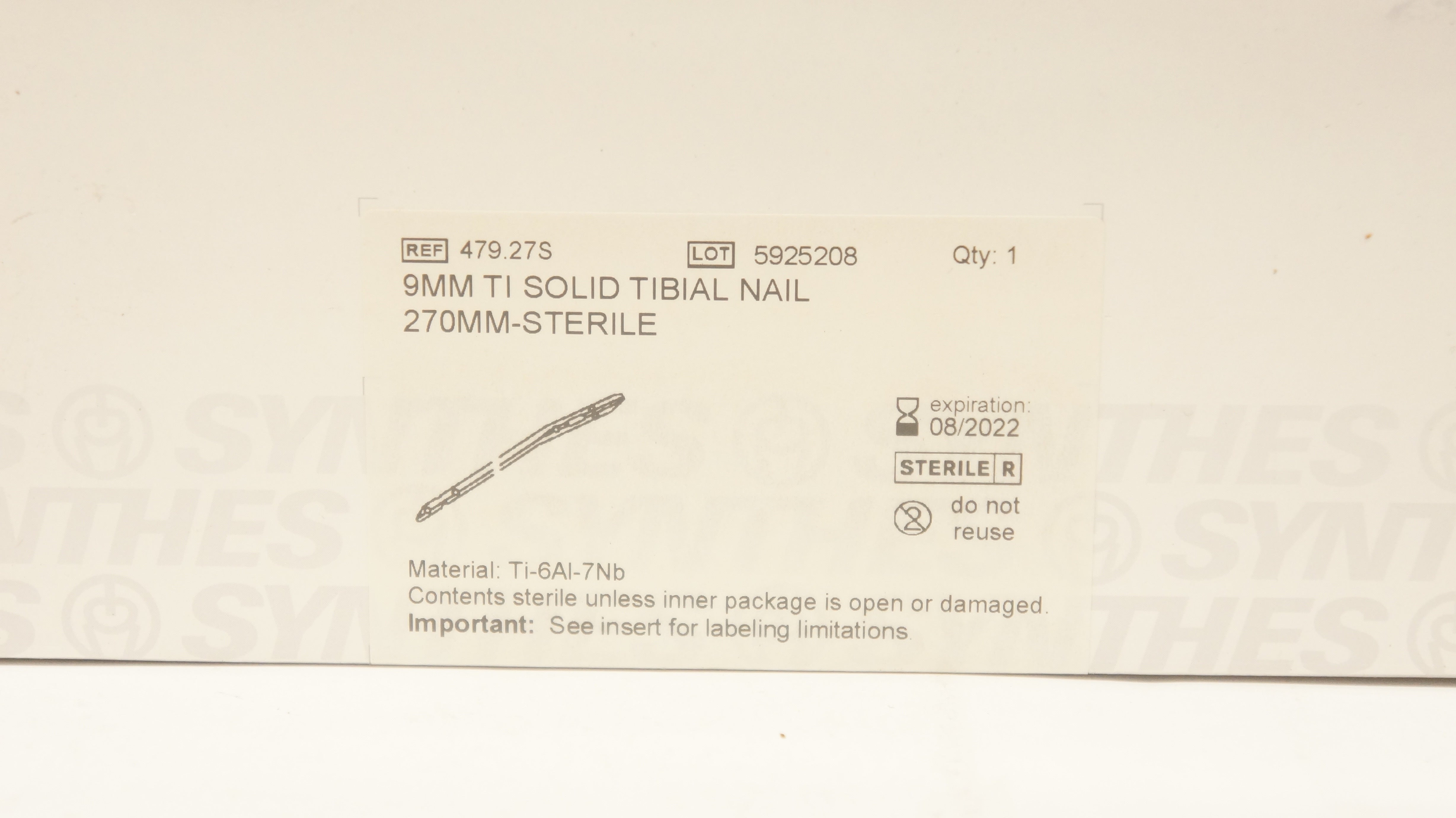 - Synthes 479.27S 9mm Ti Solid Tibial Nail 270mm