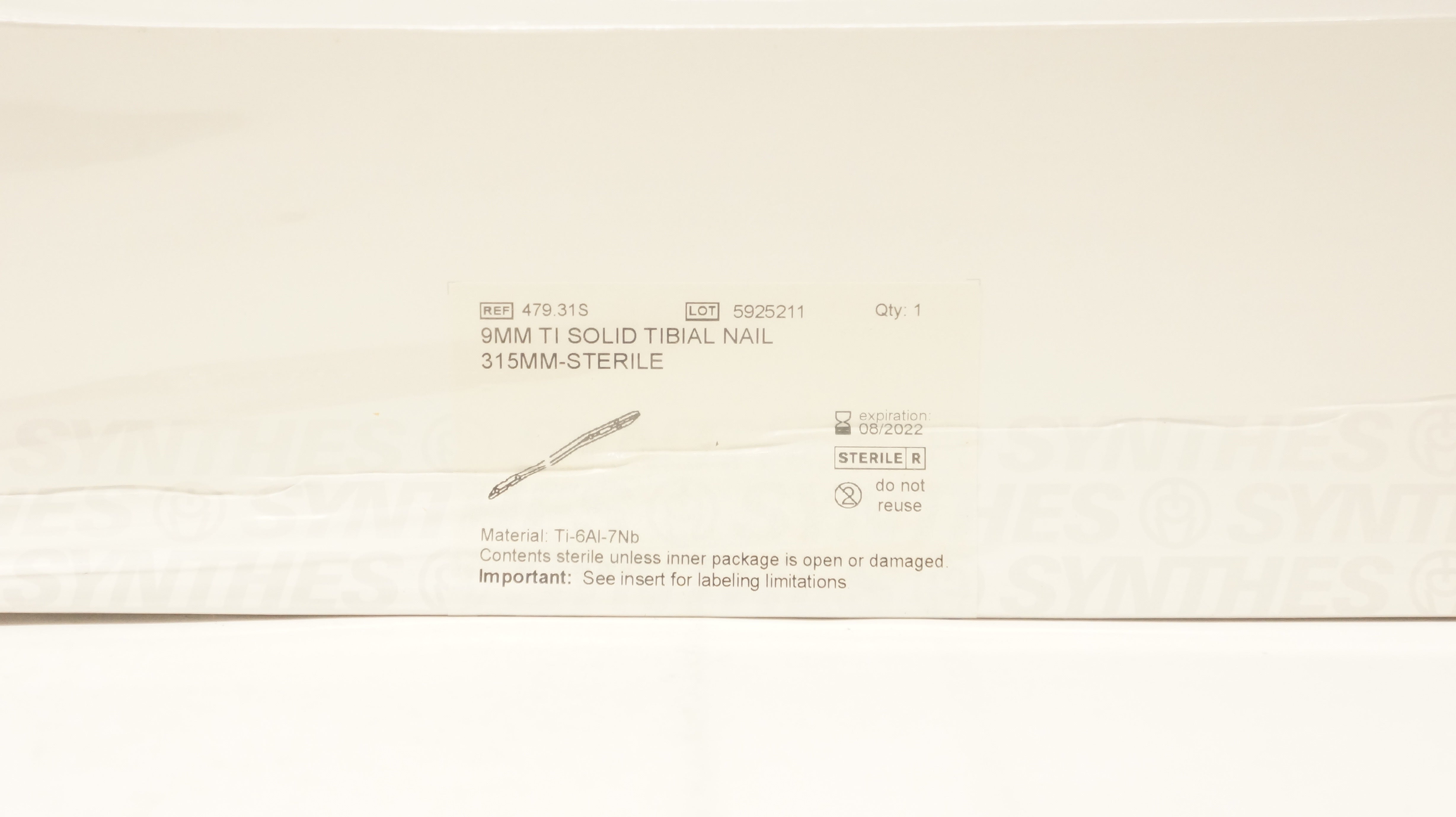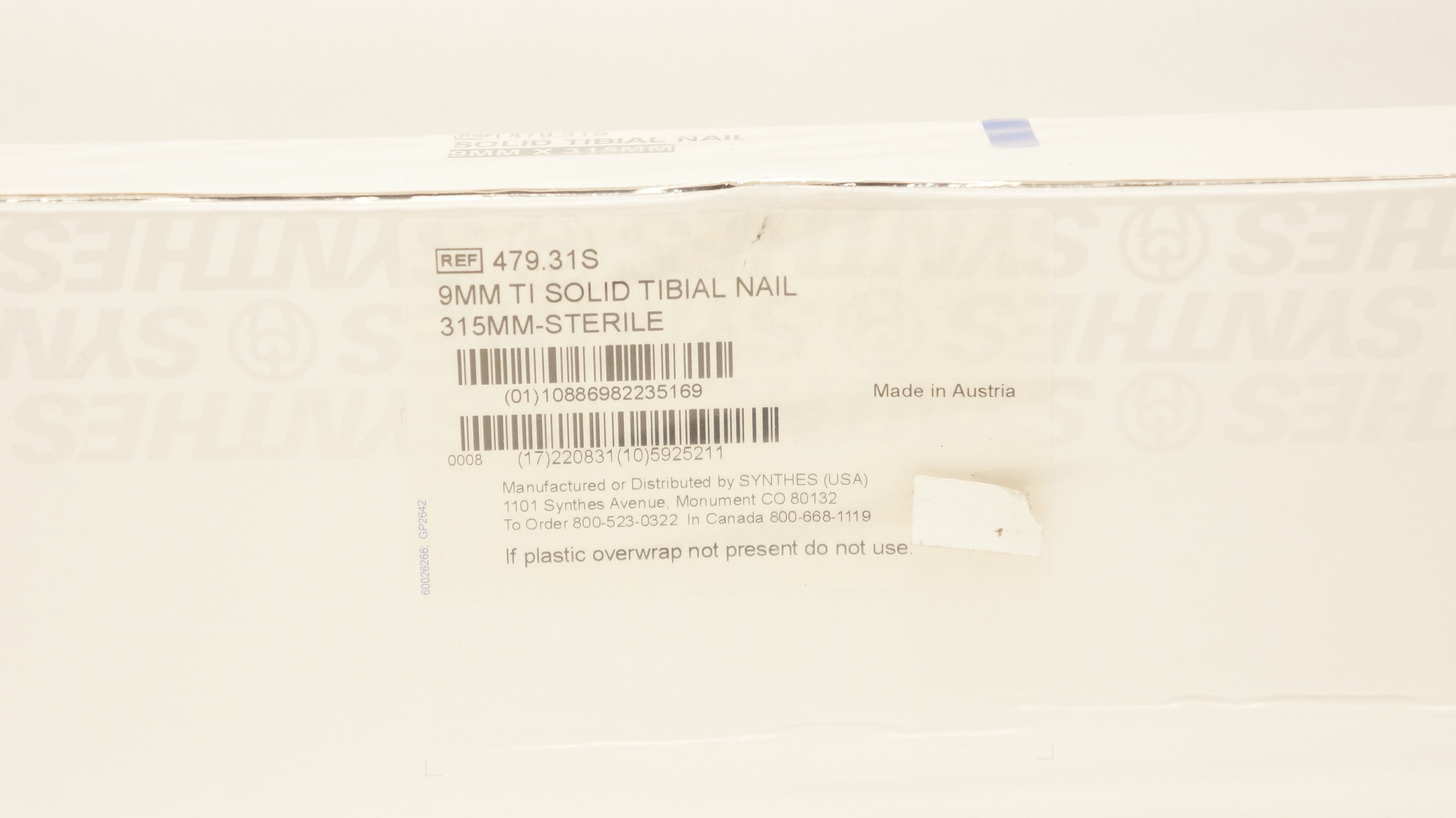 - Synthes 479.31S 9mm Ti Solid Tibial Nail 315mm