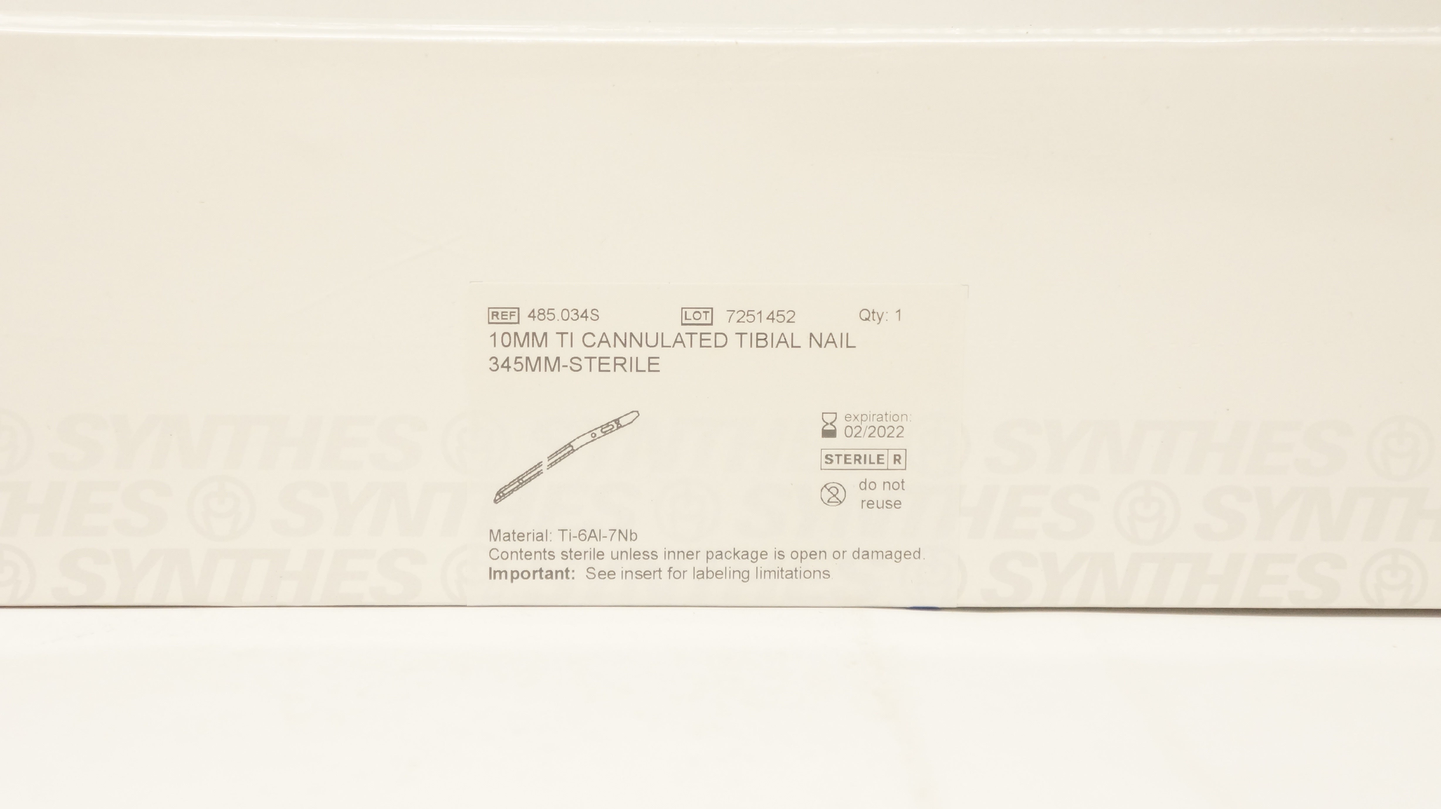 - Synthes 485.034S 10mm Ti Cannulated Tibial Nail 345mm