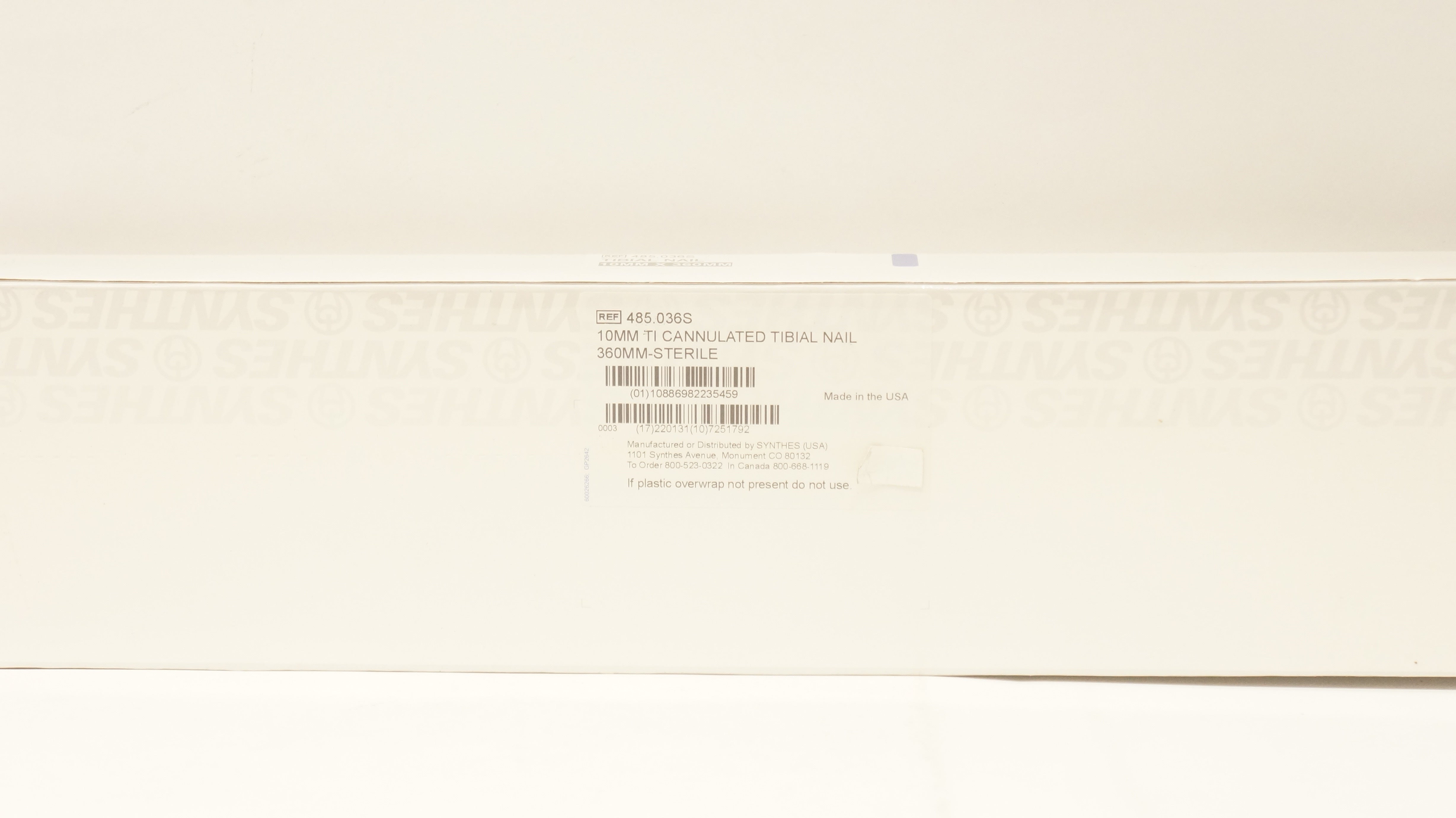 - Synthes 485.036S 10mm Ti Cannulated Tibial Nail 360mm
