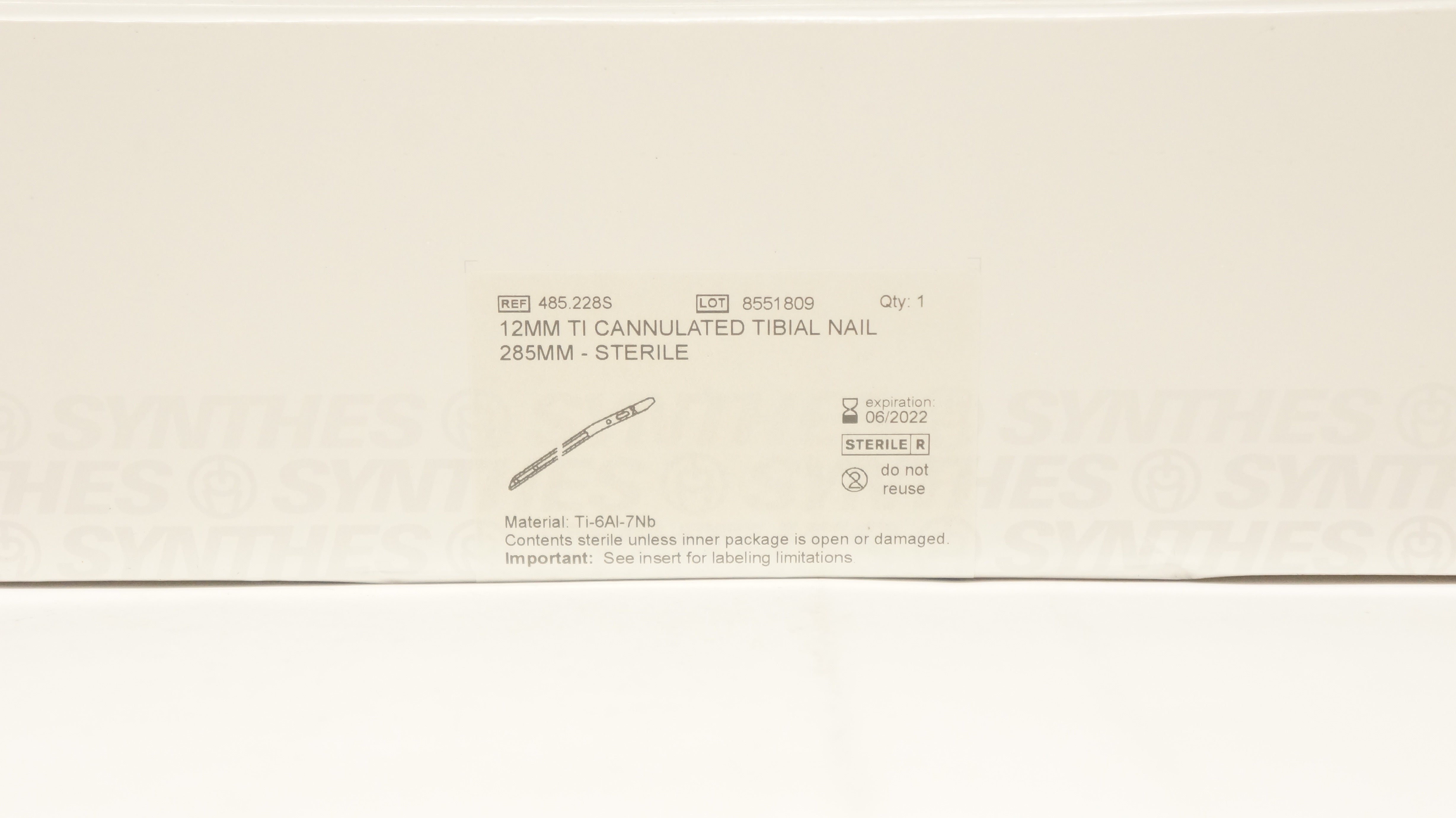 Synthes 485.228S 12mm Ti Cannulated Tibial Nail 285mm