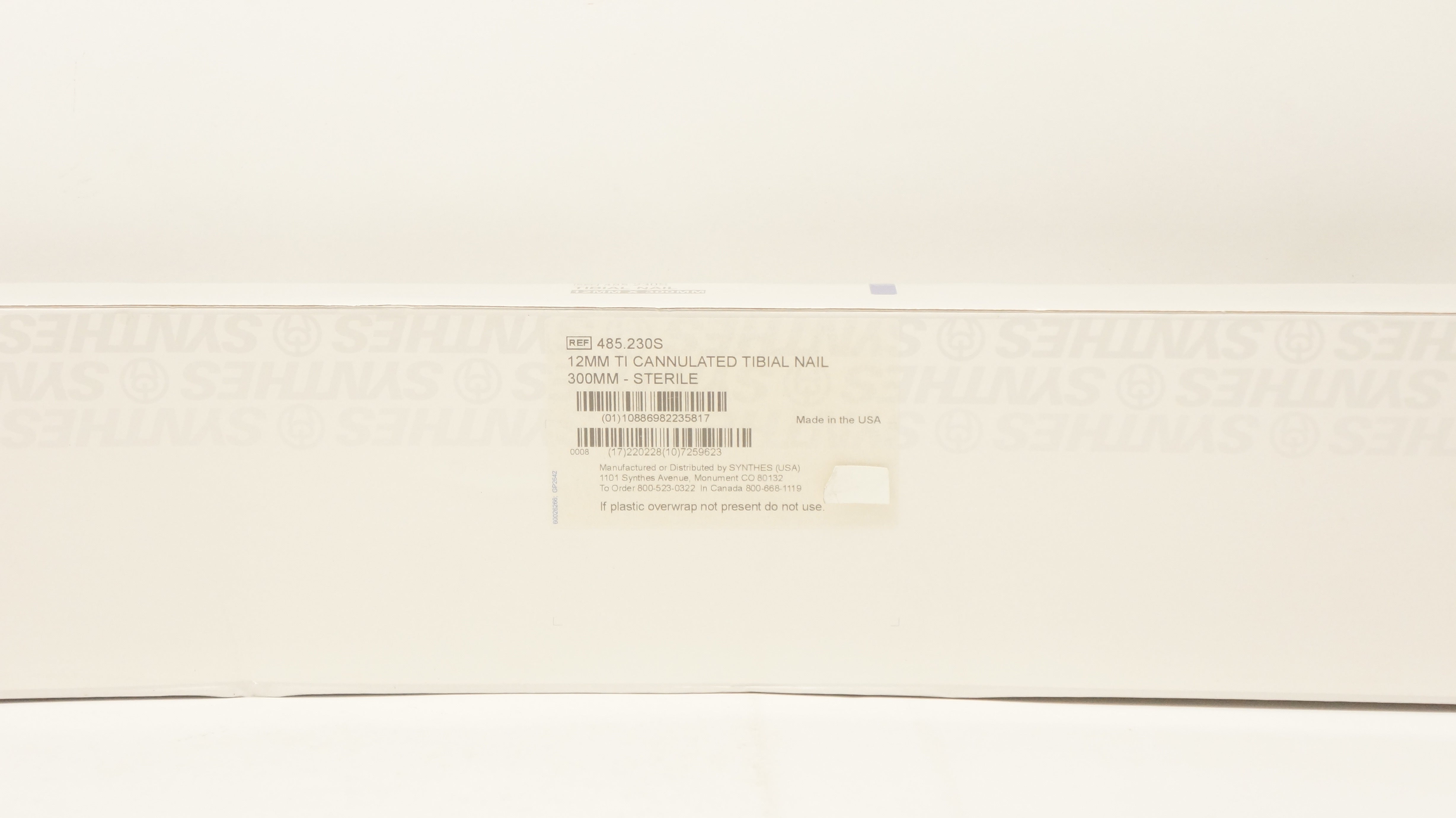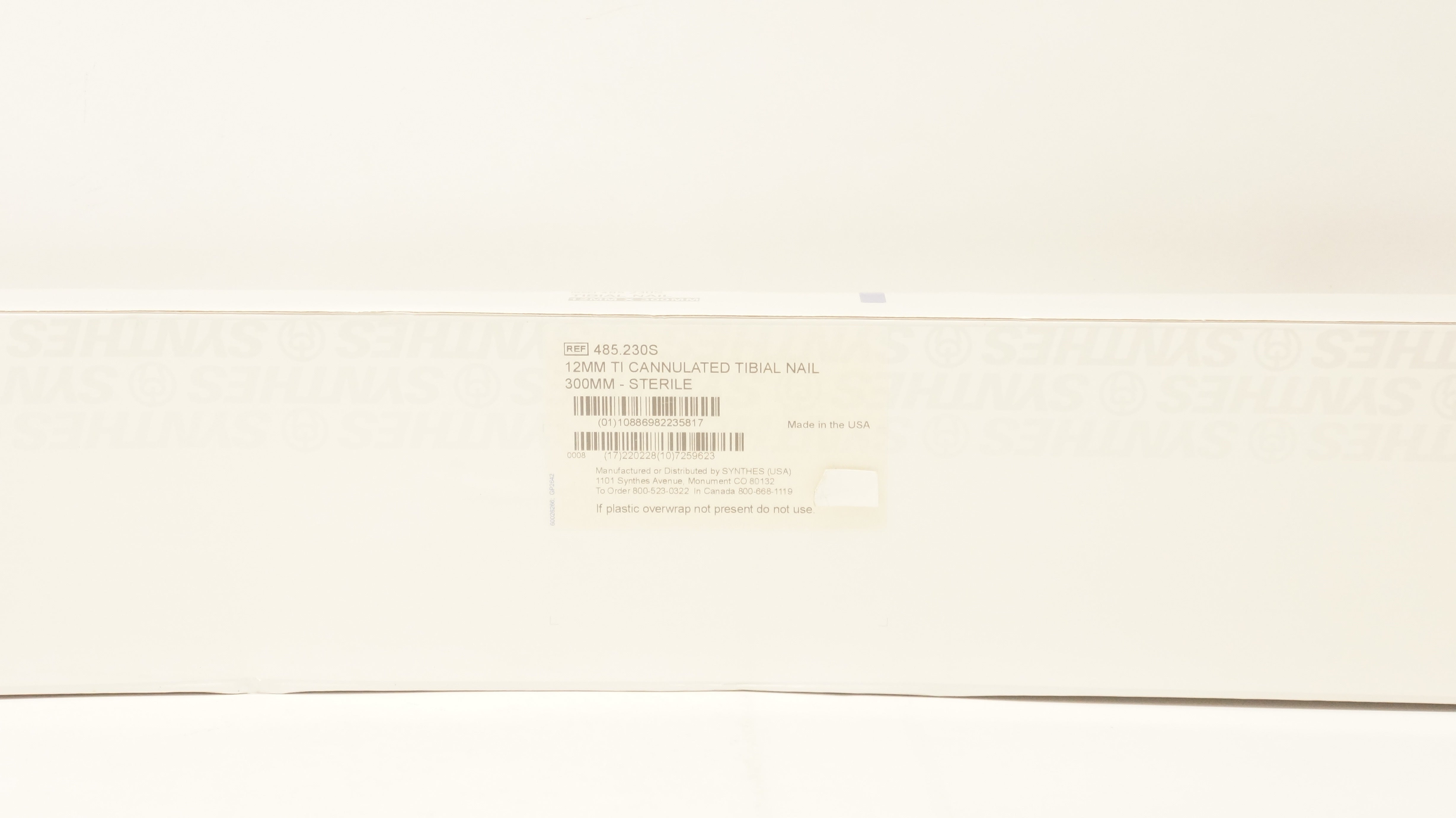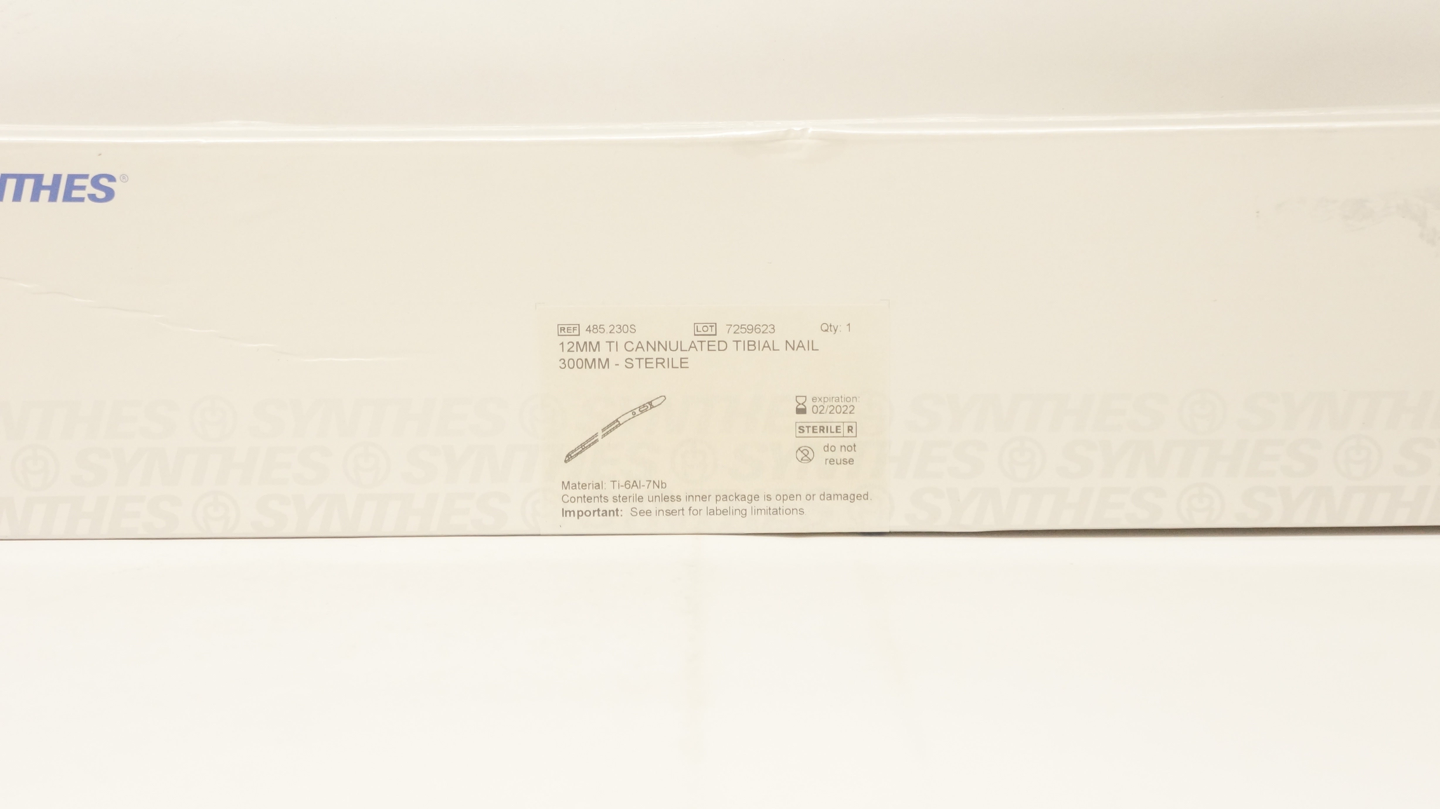 Synthes 485.230S 12mm Ti Cannulated Tibial Nail 300mm