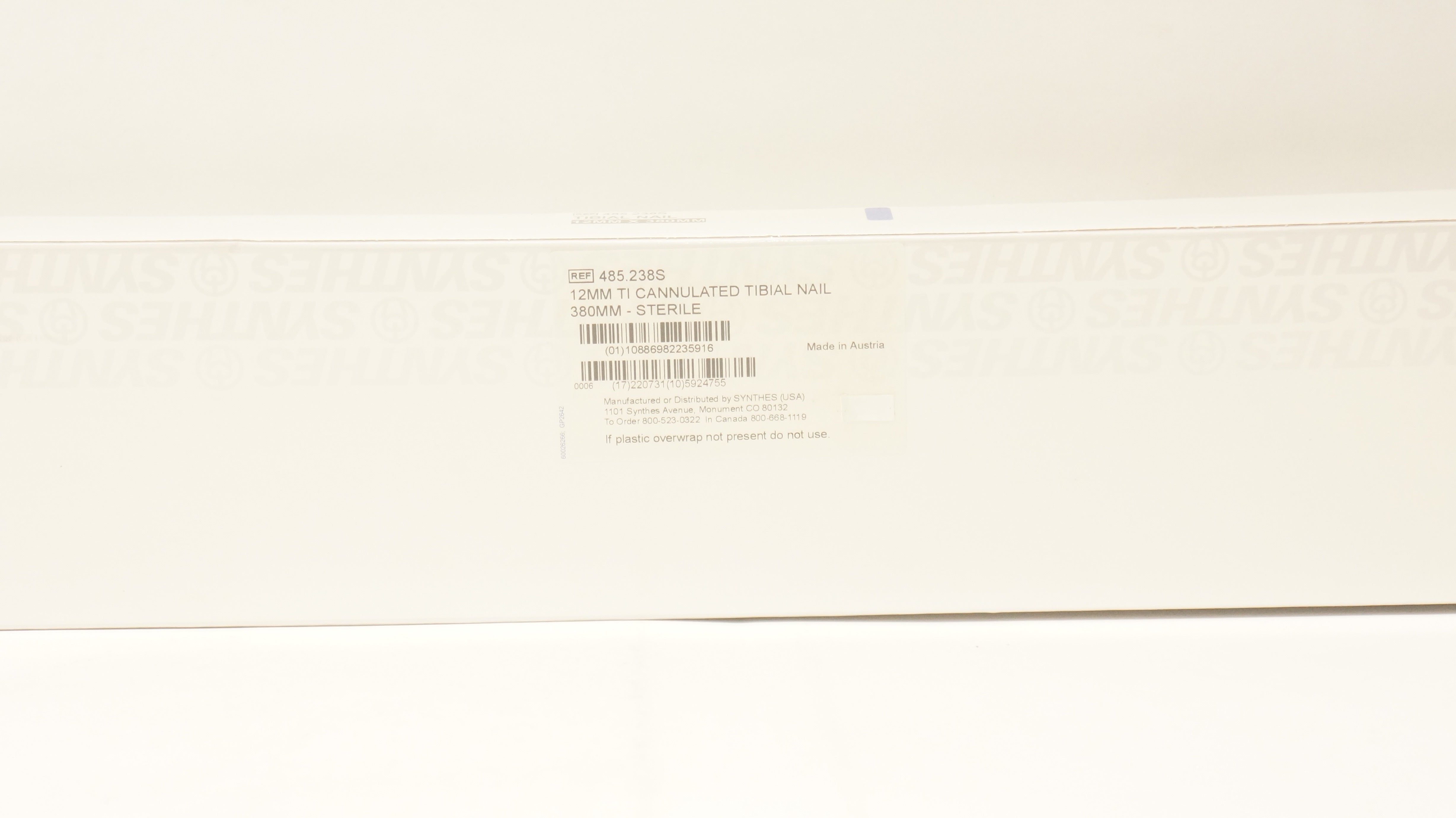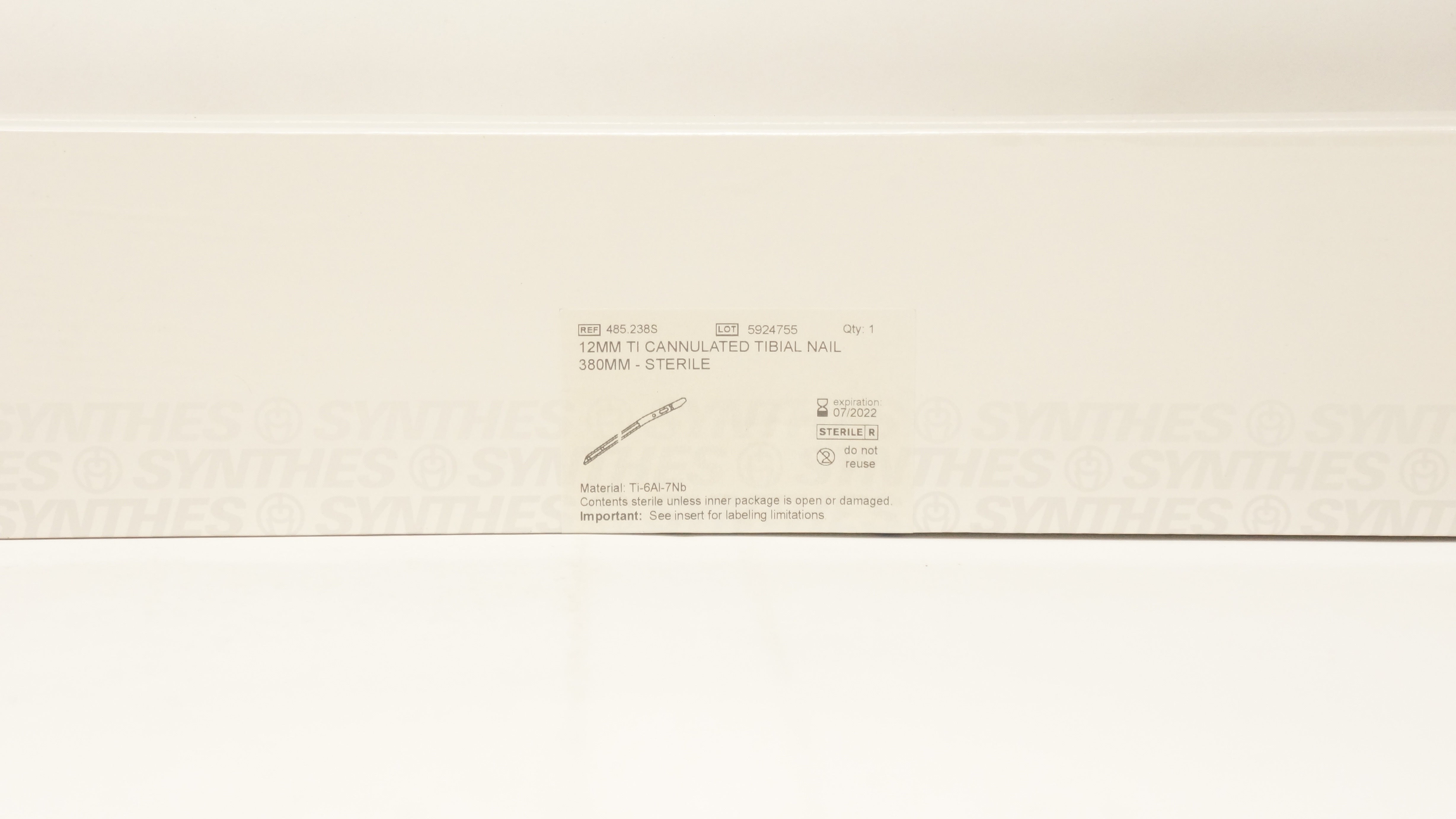 - Synthes 485.238S 12mm Ti Cannulated Tibial Nail 380mm