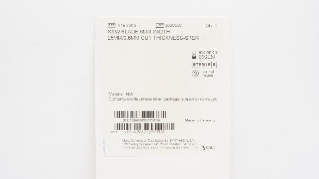 - Synthes 519.230S Saw Blade 6mm Width 25mm/0.6mm Cut Thickness-Ster (x)