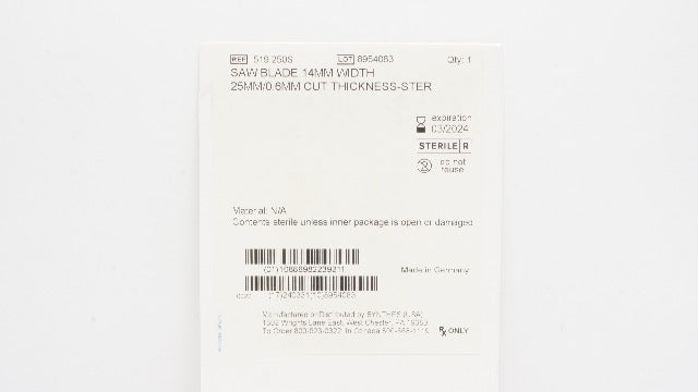 - Synthes 519.250S Saw Blade 14mm Width 25mm/0.6mm Cut Thickness-Ster (x)