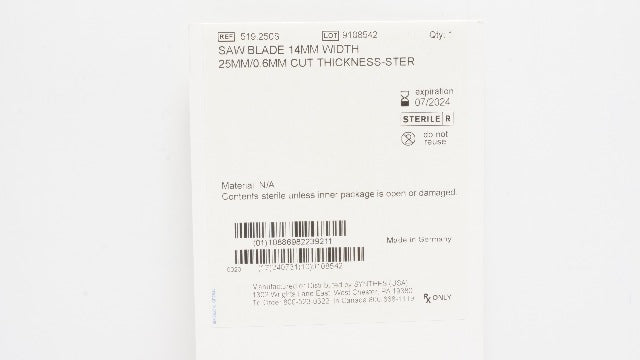 - Synthes 519.250S Saw Blade 14mm Width 25mm/0.6mm Cut Thickness-Ster (x)