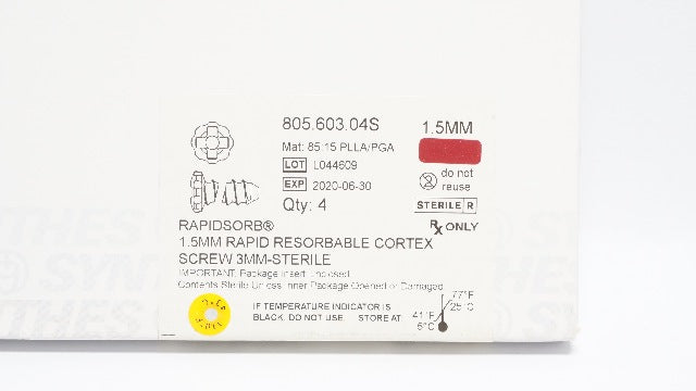 - SYNTHES 805.603.04S RAPIDSORB 1.5mm Rapid Resorbable Cortex Screw 3mm(x)-Box of 4
