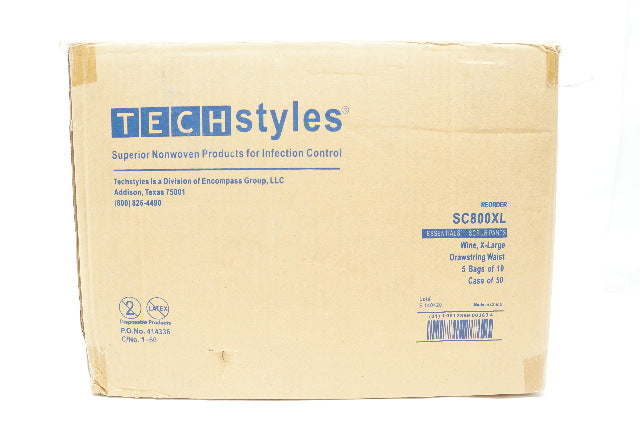 - TechStyles SC800L Essentials Scrub Pants, Wine, Large - Case of 50