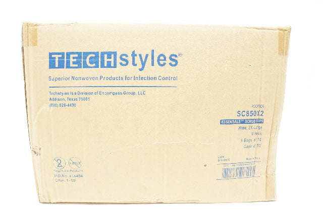- TechStyles SC850X2 Essentials Scrub Tops, Wine, V-Neck, 2X-Large - Case of 50