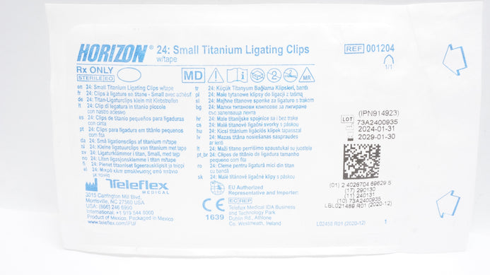 - Teleflex 001204 Horizon 24 Small Titanium Clips with Tape