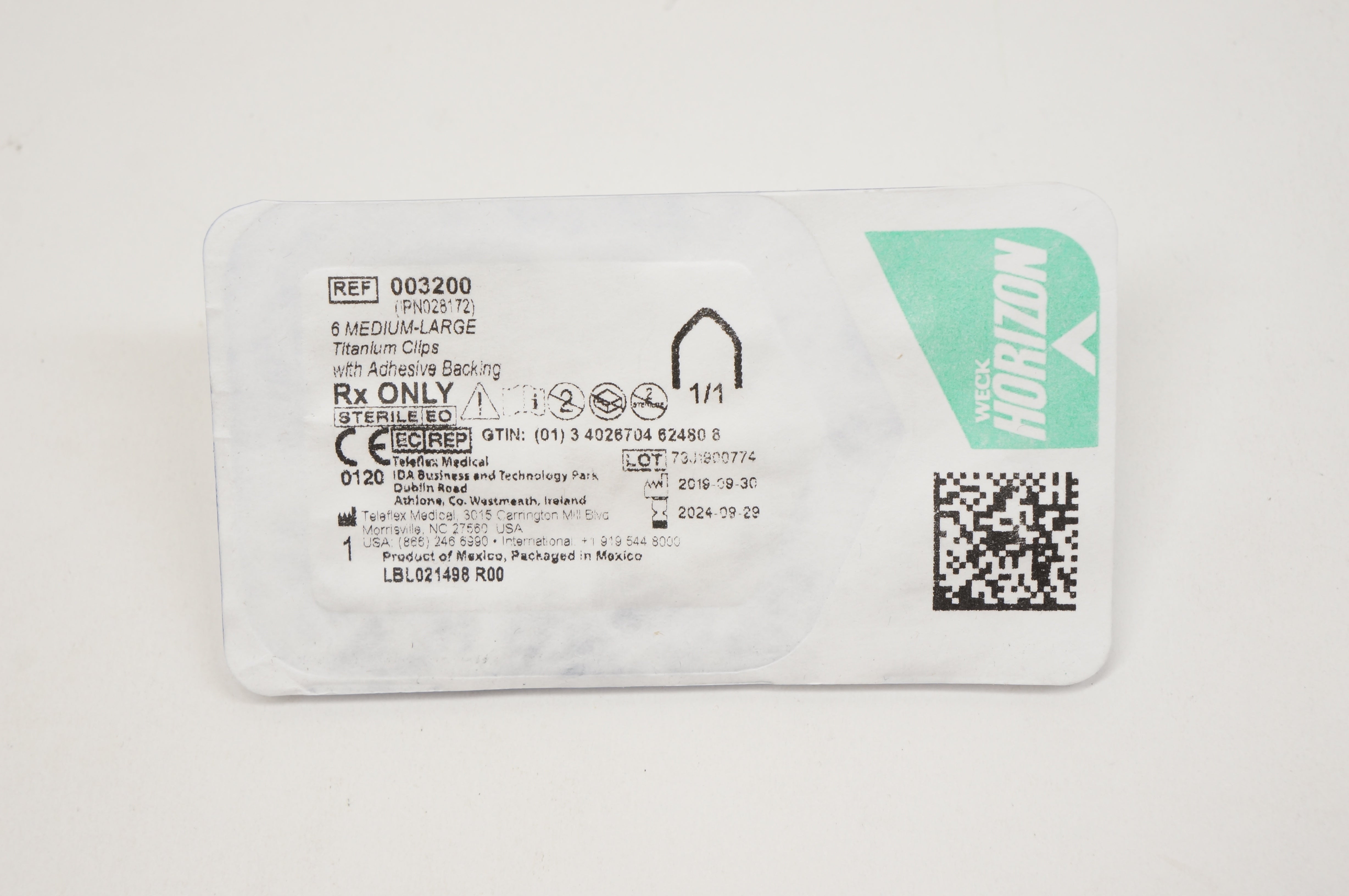 Teleflex 003200 6 Medium-Large Titanium Clips with Adhesive Backing 1/1