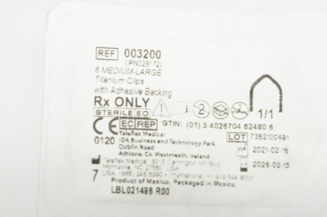 - Teleflex 003200 Weck Horizon 6 Medium-Large Titanium Clips w/Adhesive Backing