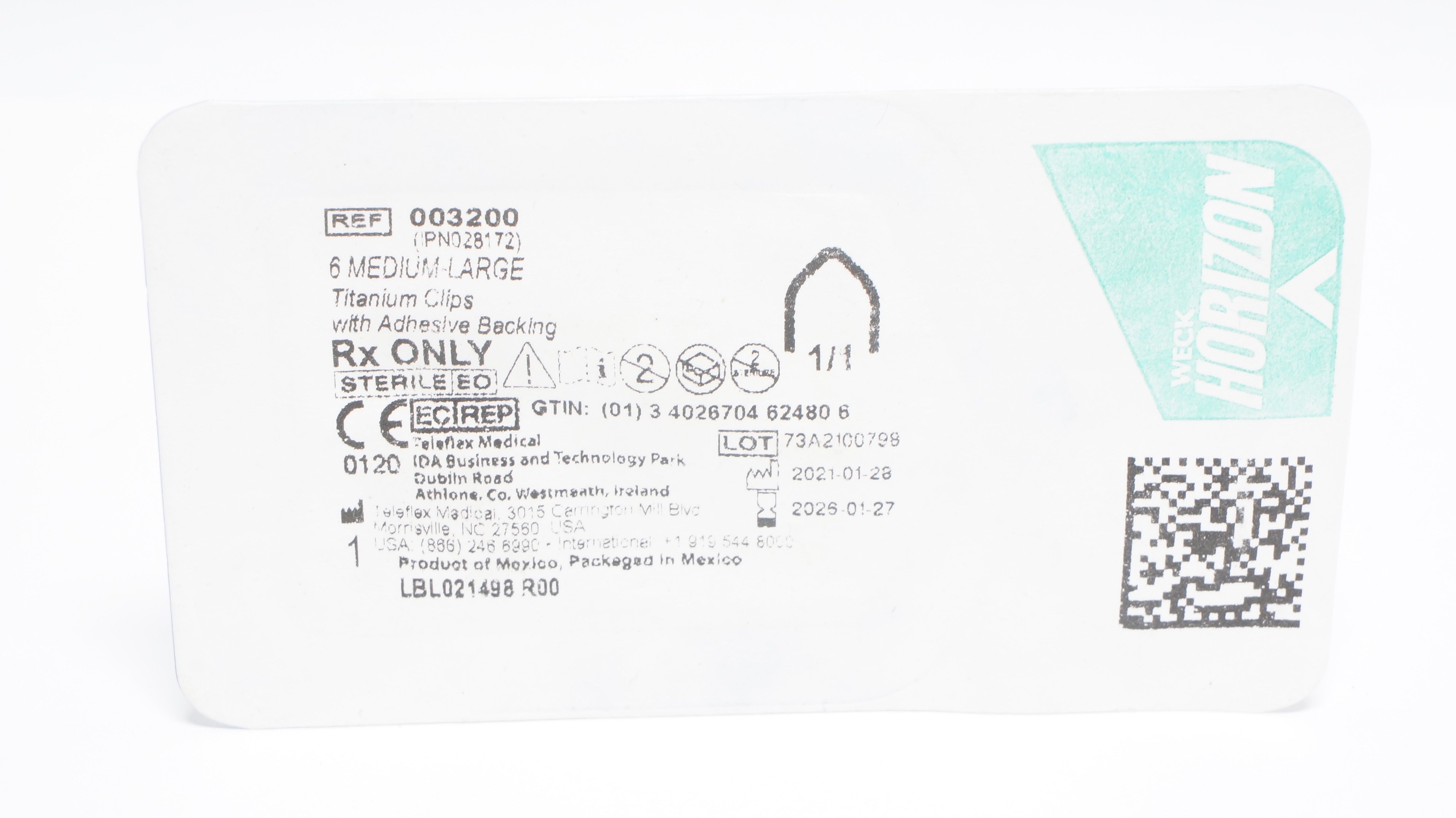 - Teleflex 003200 Weck Horizon Titanium Clips w/Adhesive Backing 6 Medium-Large(x)