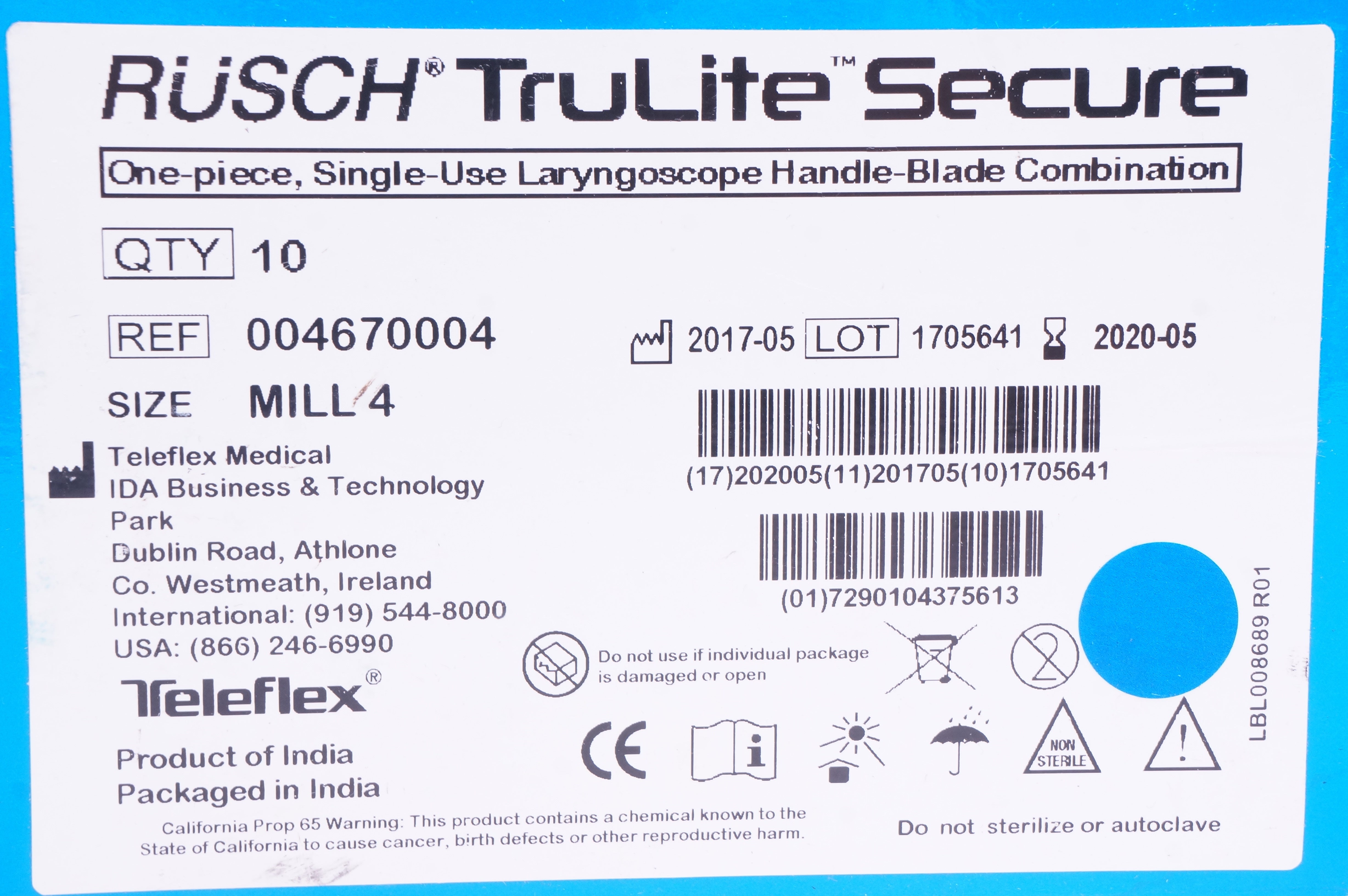 Teleflex 004670004 Rusch TruLite Laryngoscope Handle-Blade Mill 4 -Box of 10(x)